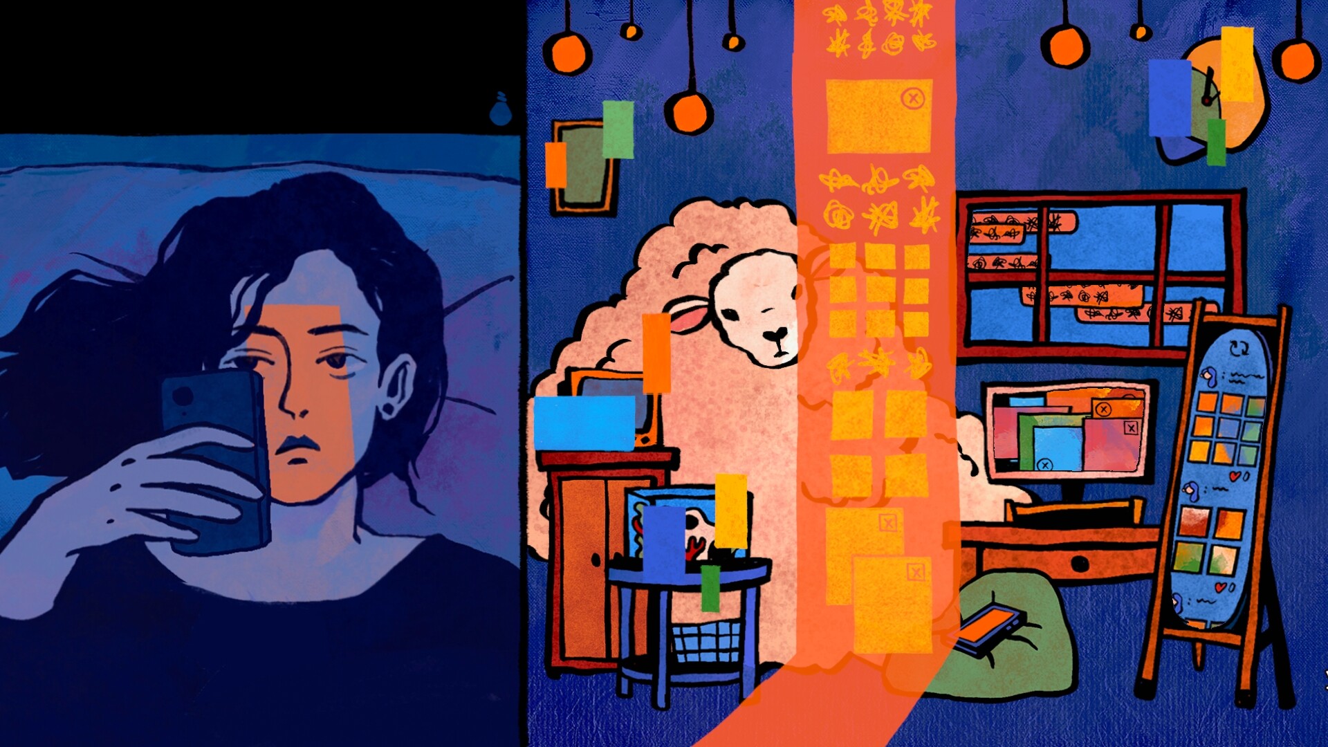 도시가 잠에 들자, 초침은 똑딱거리고, 양들은 여전히 머리맡을 뛰어 다닙니다. 소녀는 왼쪽으로 세번째 몸을 뒤집지만, 머릿속은 갈수록 시끄러워 집니다……앗, 머릿속에서 또 공연이 시작 되려나봐요. 오늘밤은 잠에 들 수 있을까요?