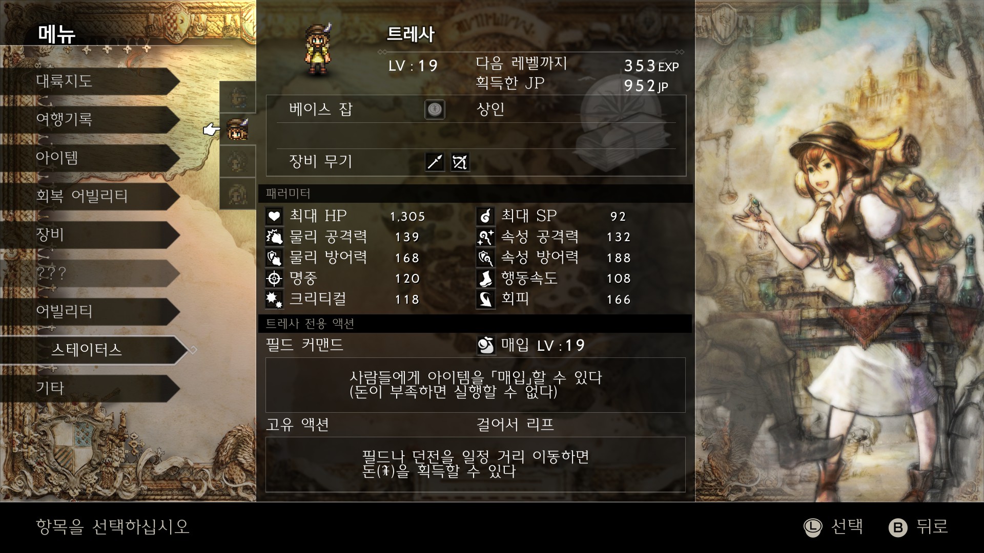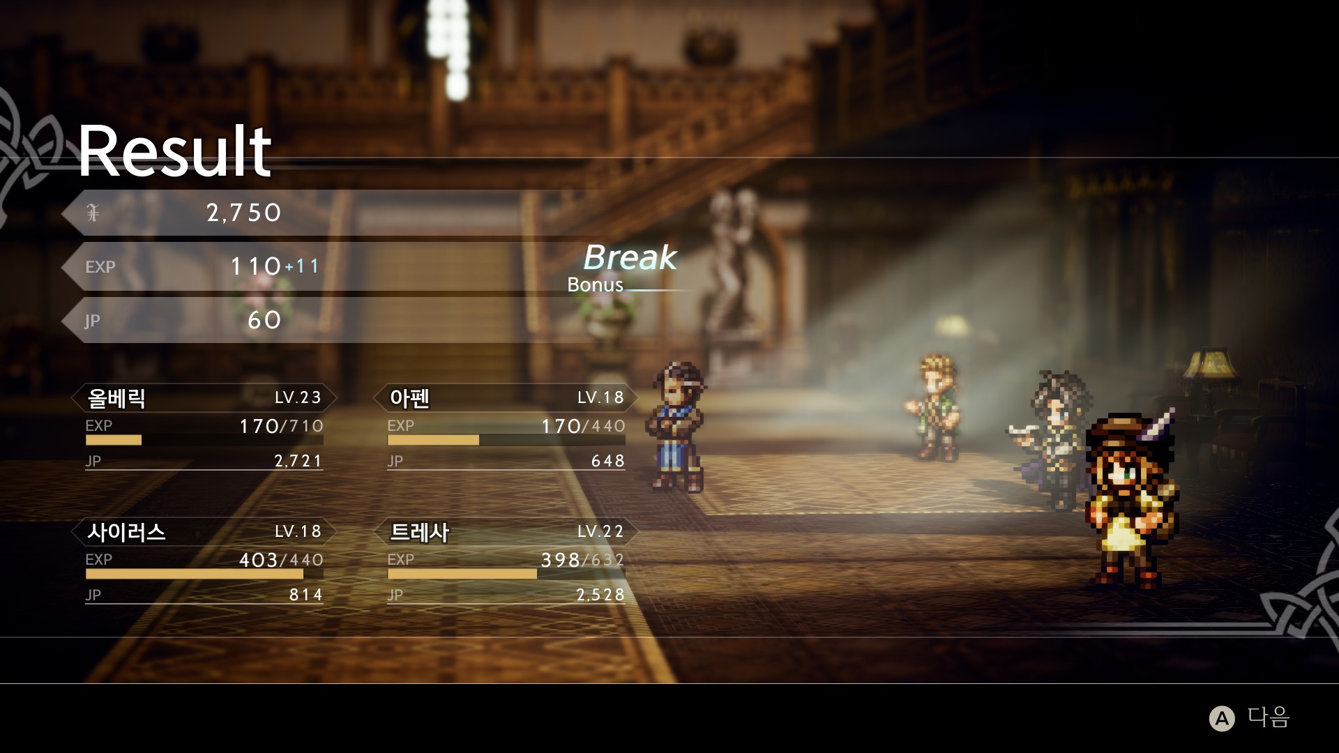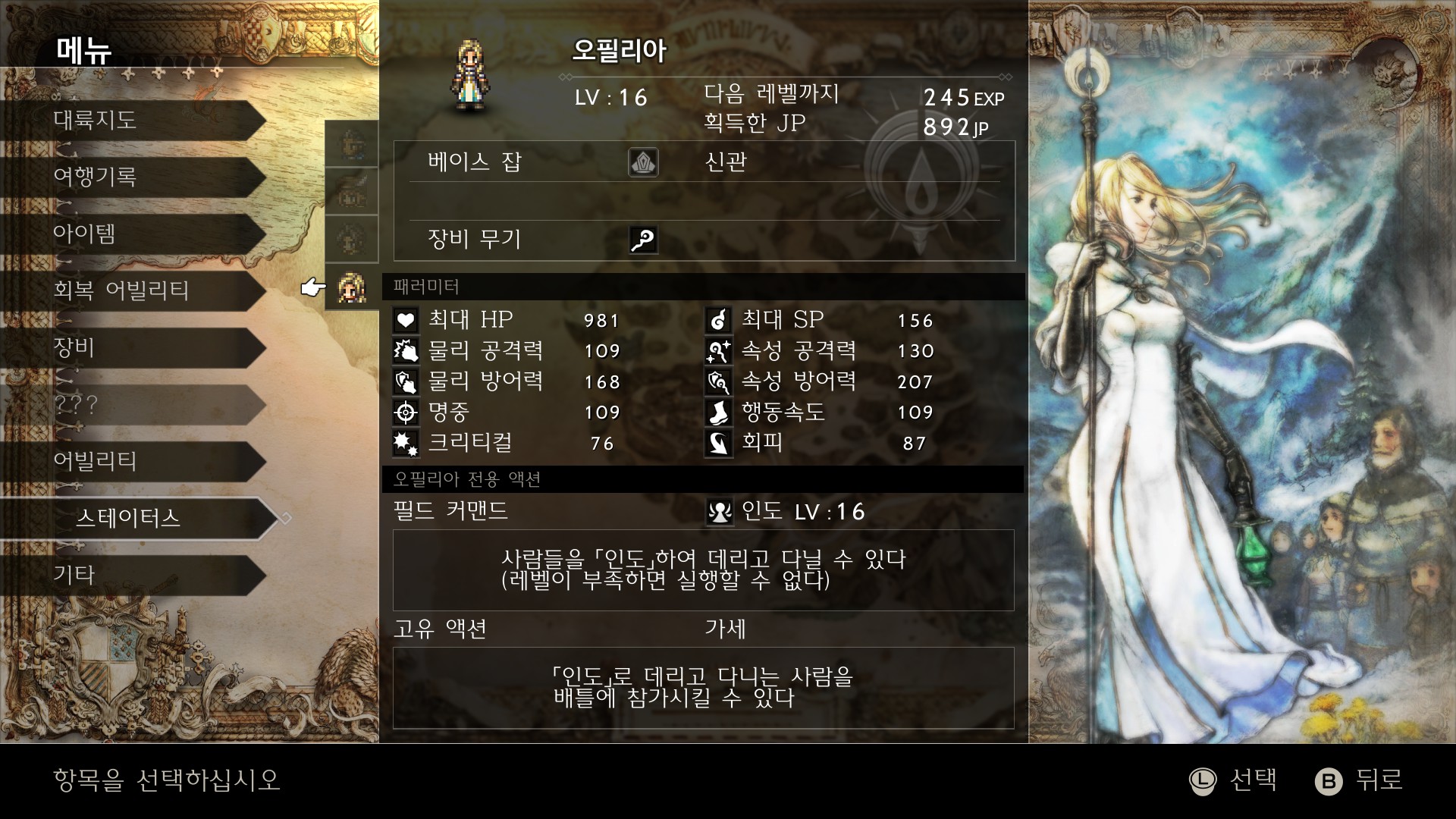 서브 잡까지 고려해서 이상적인 파티원 구성이 떠오르는데, 올베릭이 강제 고정이라서 항상 파티 구성이 아쉬워진다.