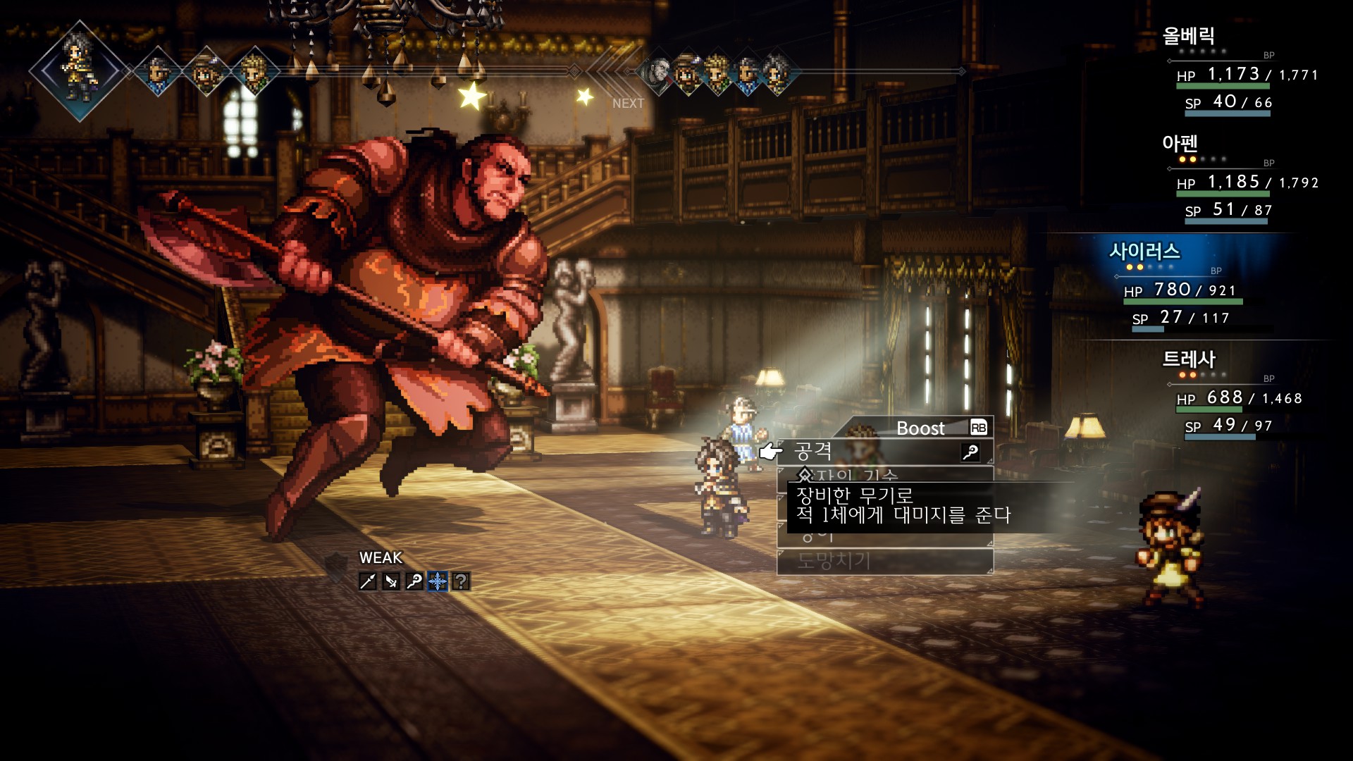 주인공이 고정인 줄 알았으면 성능캐나 여캐 중에 하나를 골랐을텐데, 나는 올베릭을 주인공으로 골라버렸다.