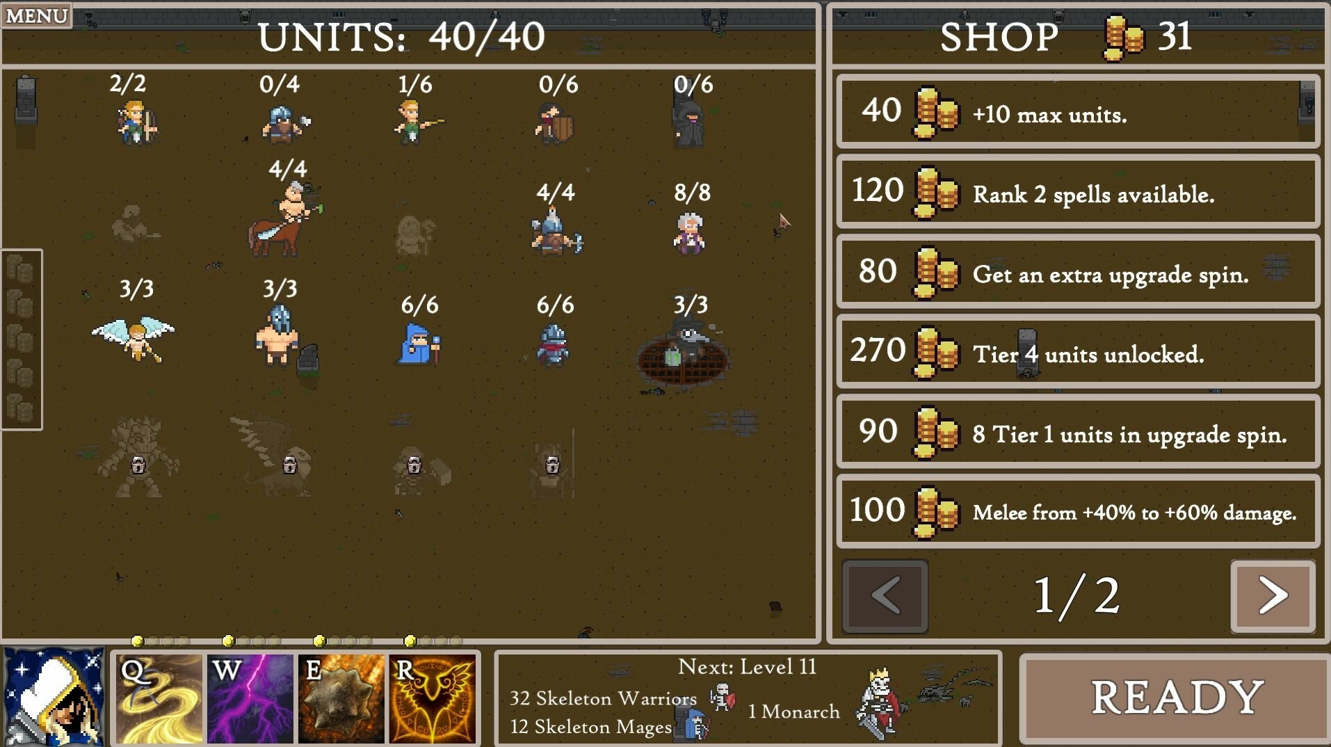 Create an army and use spells while it fights for you. Mage & Monsters is an active auto battler, where you must choose wisely between upgrading the might of your army, or increasing the power of your spells.