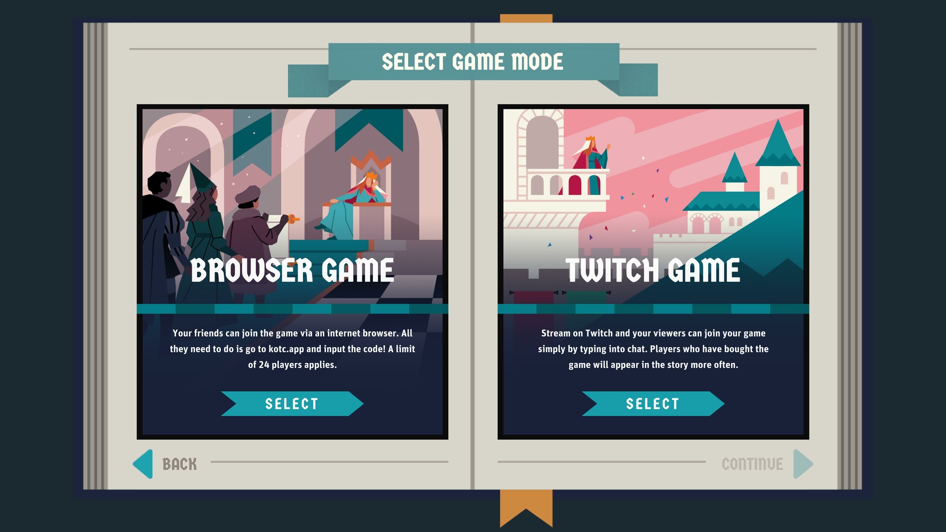 King of the Castle은 스트리머 모드에서 Twitch API와 완전히 통합됩니다. 스트리머는 군주가 되어 플레이하고, 시청자들은 채팅창에 "!join"을 입력하는 것만으로 최대 3,000명까지 게임에 참여하여, 귀족의 신분으로 의회를 구성할 수 있죠. 또한 채팅을 입력해 여러분이 내리는 결정에 투표하고, 국정에 영향력을 행사할 수 있습니다!