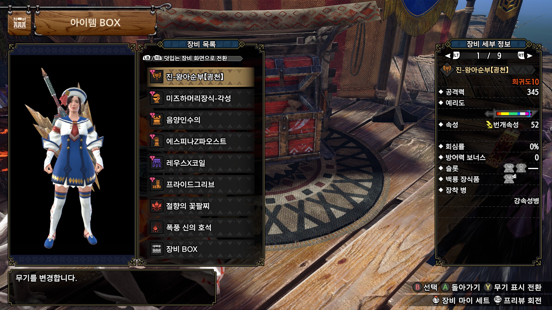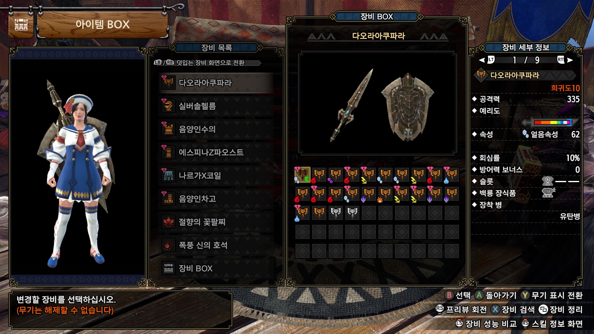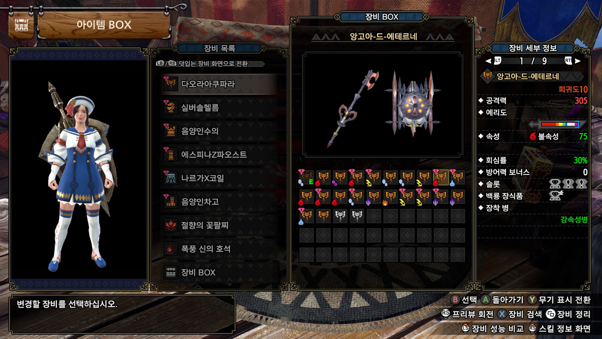 깡공이 낮다는 단점이 있지만, 기본 회심이 높고, 기본 보예리가 달려있는게 장점인 무기