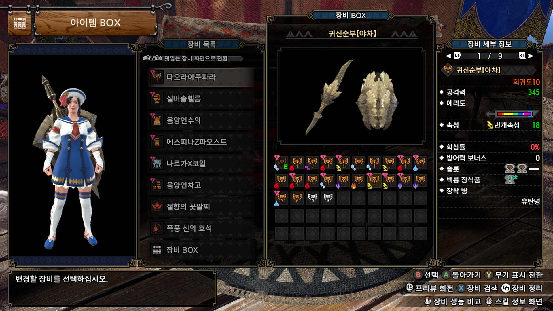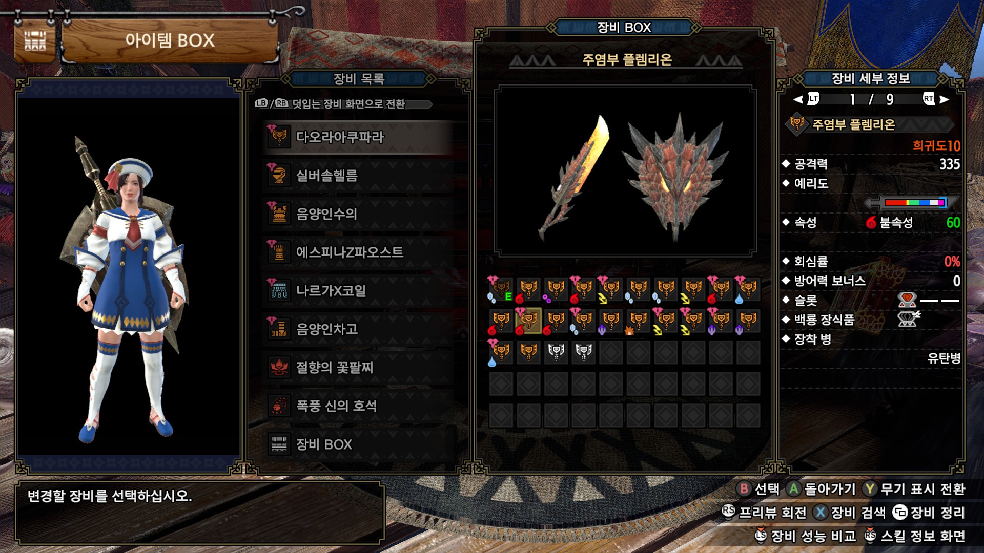 속성 육질이 더러운 몹(20 미만)을 잡거나, 예리도 관리가 귀찮을 때 쓰기 좋습니다.