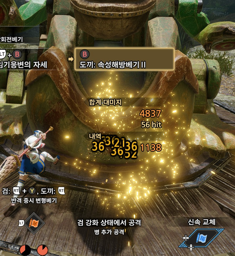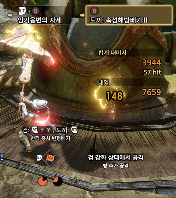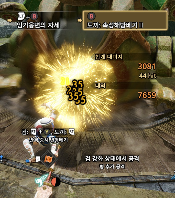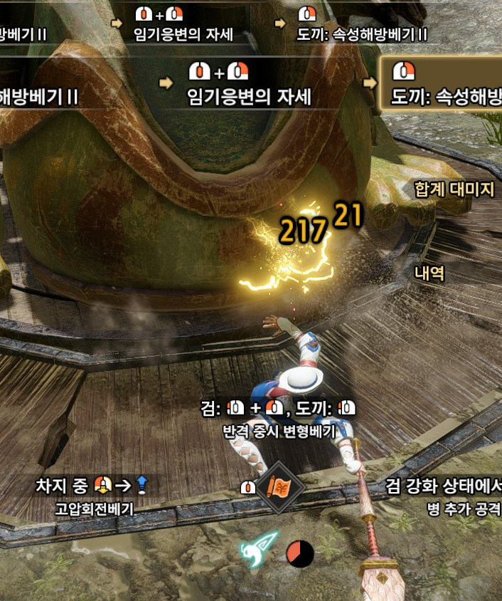 위와 같은 상태로 복부에 해방베기2 첫타 대미지는 152, 막타는 221, 병딜은 평균 30얼마가 뜹니다