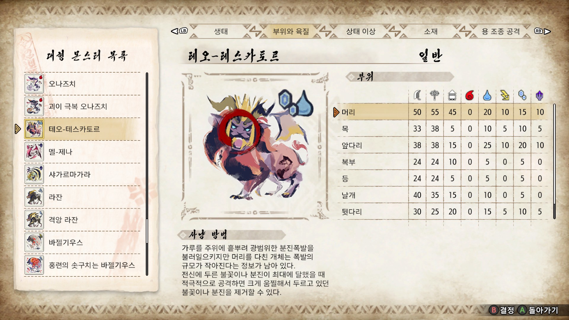 우선 모드를 통해서 두꺼비의 복부 육질을 테오 머리 육질과 같이 참격 50, 수속20 으로 맞추고 테스트를 해보겠습니다.