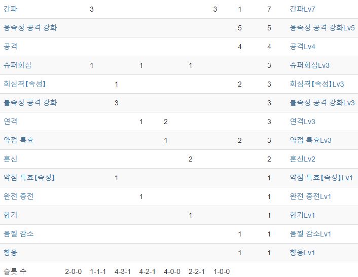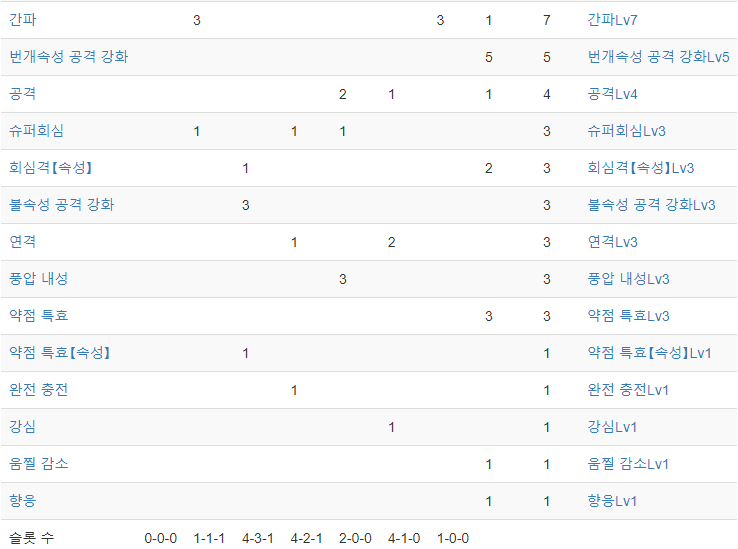 모든 속성 쌍검 공통적으로 딜만 보자면, 보라예리+공7간7약3슈3+회심격3+연격3+약특속1(여기까지 공통)을 챙기는게 나선참 딜이 높게 나옵니다.