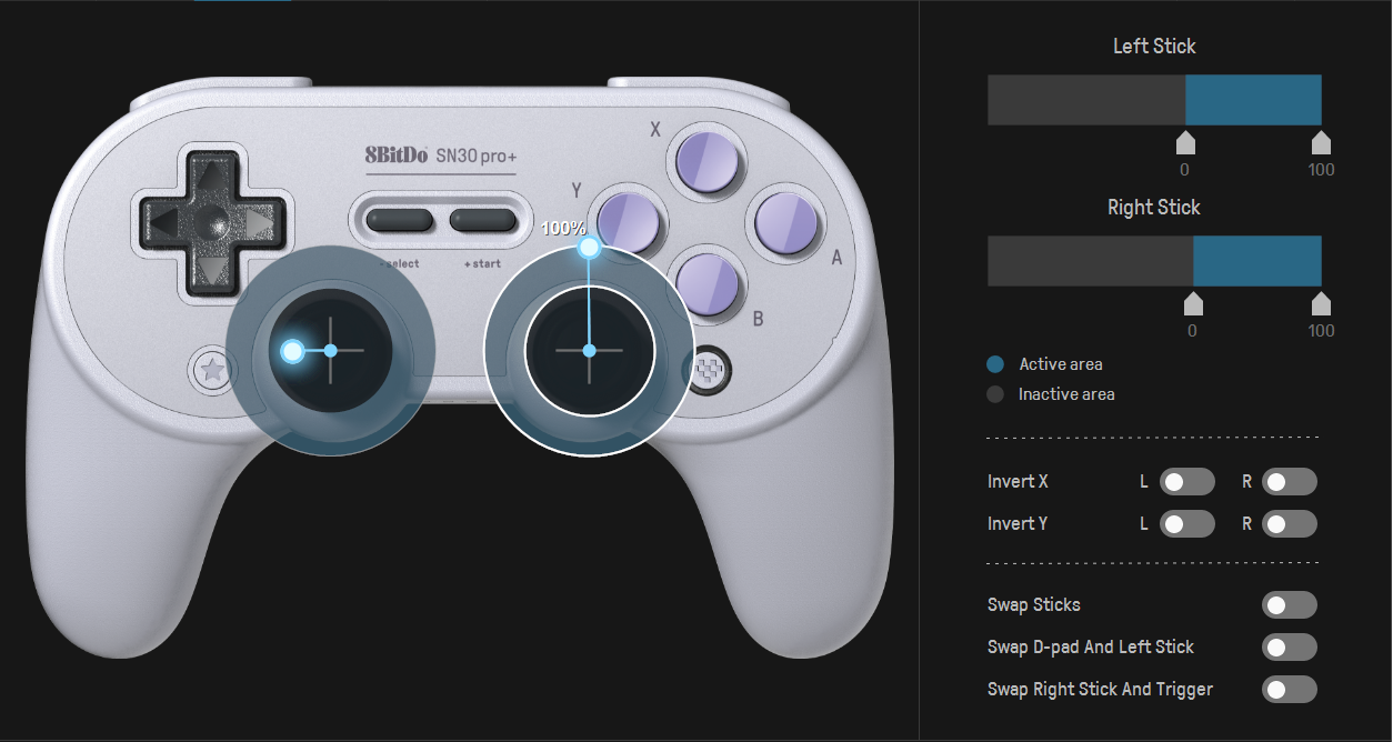 희한한 건 L스틱이 쏠린 상태에서 R스틱을 9시 방향에서 12시 방향으로 돌리면, L스틱이 점점 더 좌측으로 기울어진다는 것?