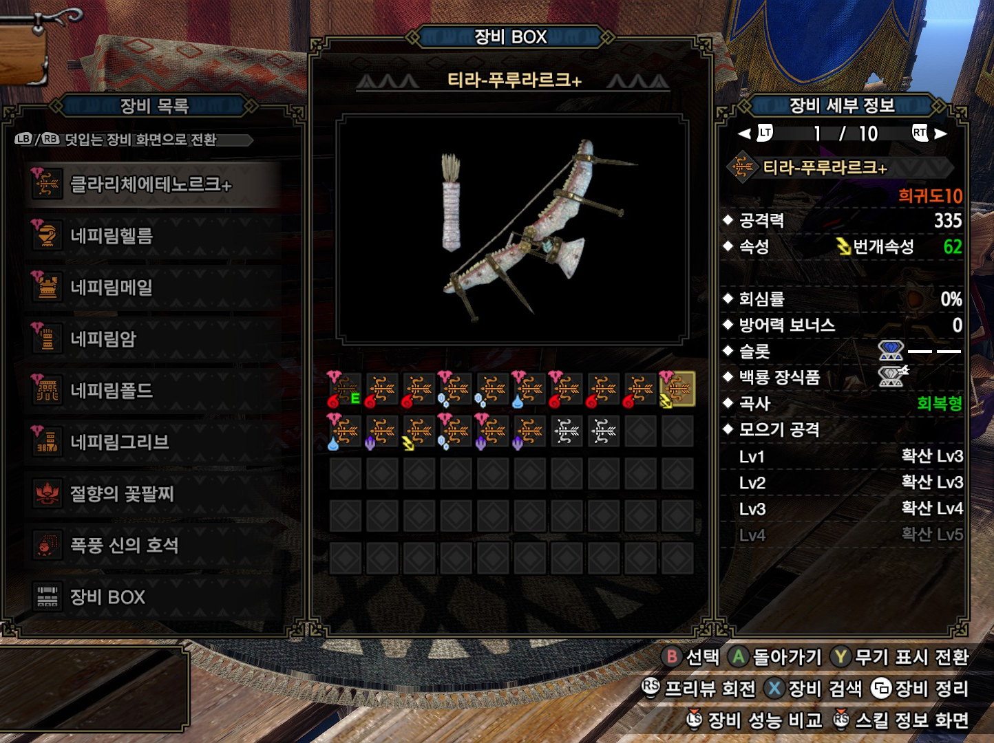 수속 확산활은 두가지 무기 중에 몬스터 속성 육질이나 방어구 괴이연성, 호석 상태에 따라 바꿔가시면 될 것 같습니다.