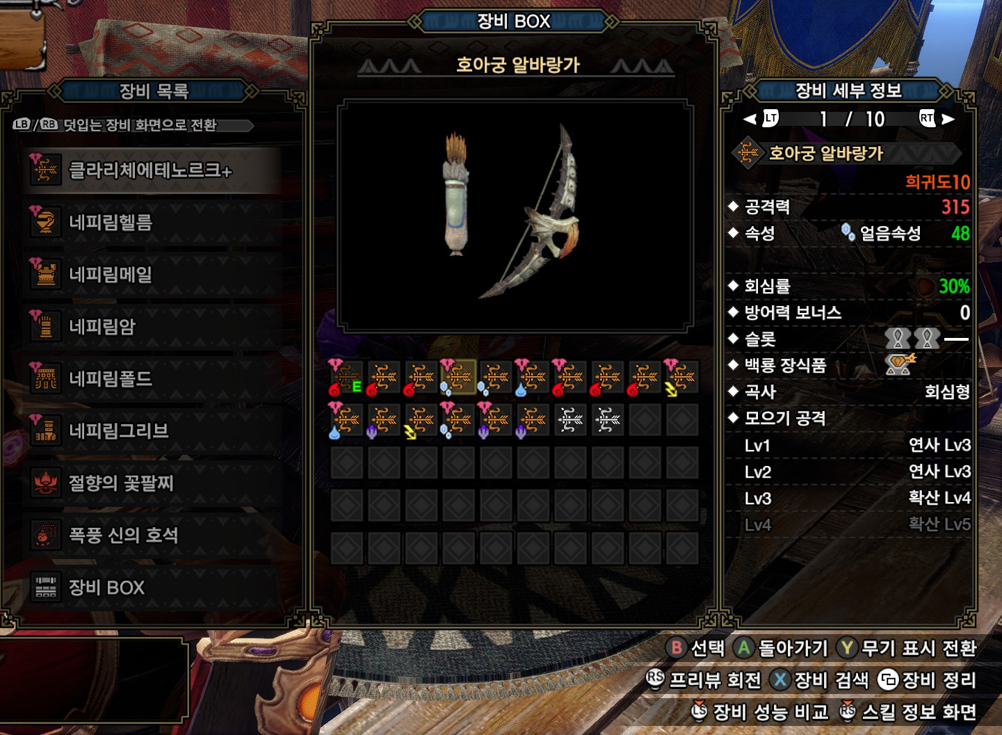 참고로 홍바젤이나 디아블로스를 잡을 때는 관통활도 괜찮습니다(빙속 관통활은 사지틀다오라 추천).