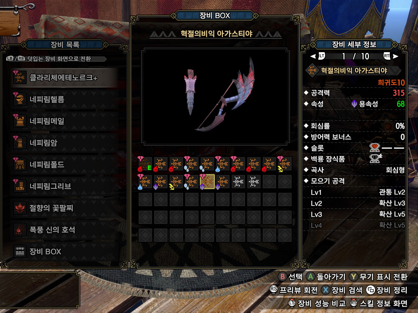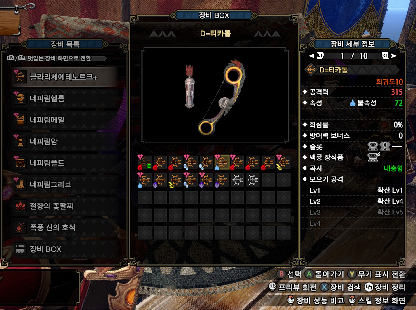 ..개인적으로 수속 약점몹 중에서 자주 잡는 몹이 없다보니, 5속성 무기 중에서 수속이 가장 활용도가 떨어집니다.