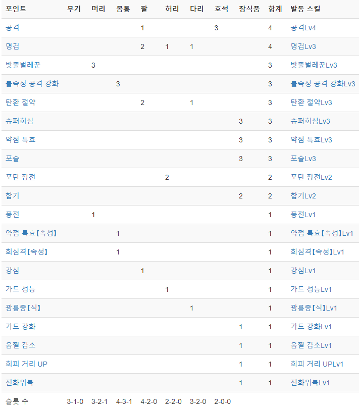 연성을 하나도 안한 상태를 기준으로 짜다보니 쓸데 없는 스킬이 들어가거나, 못 넣은 스킬들이 있습니다.