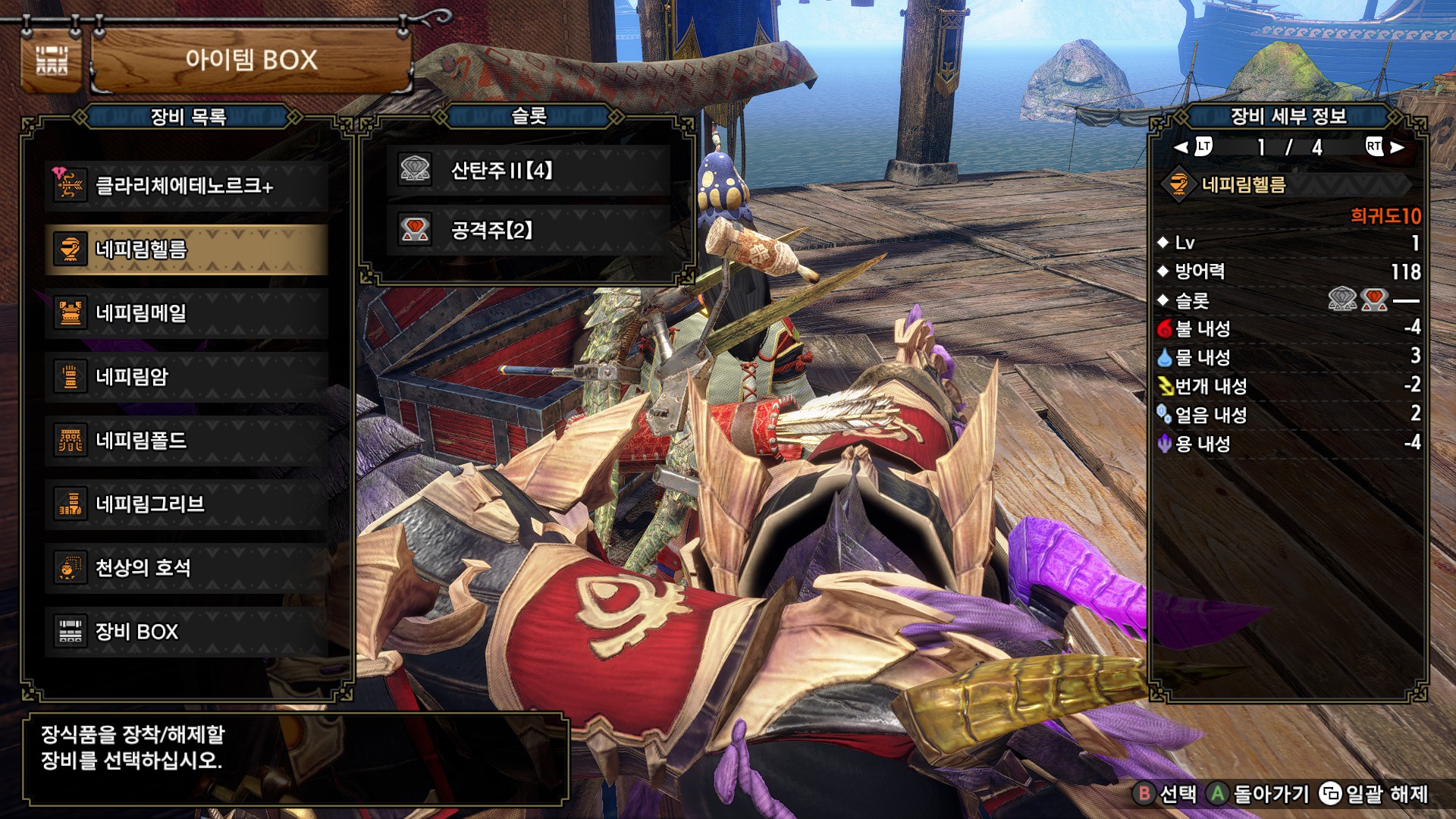 깡통 상태 네피림 방어구 스킬셋입니다.