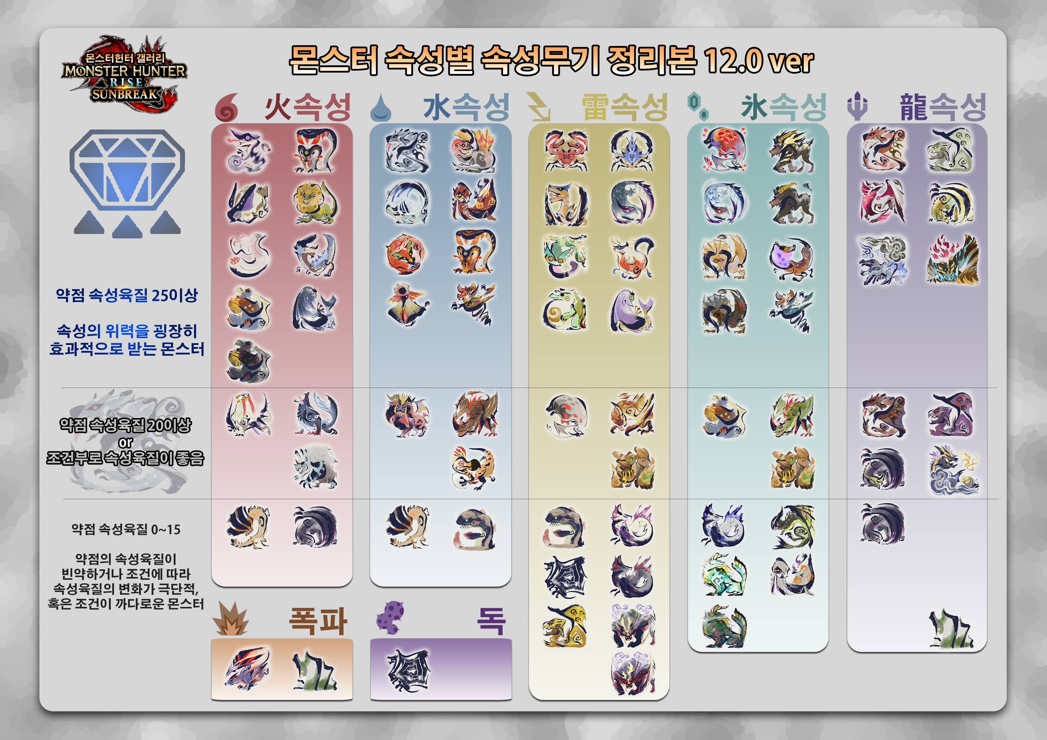한눈에 보는 특효or약점속성 정리도 13.0v - 몬스터헌터 갤러리 (dcinside.com)