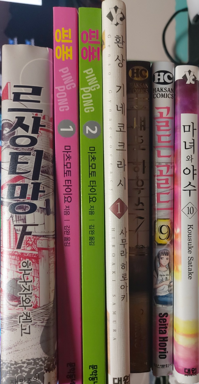 핑퐁 1,2 : 드물게 원작보다 애니메이션으로 먼저 접했던 작품. 예~~~전에 애니메이션을 재밌게 봐서 구매. 5권까지 구매하고 난 뒤 한꺼번에 읽을 생각이다.