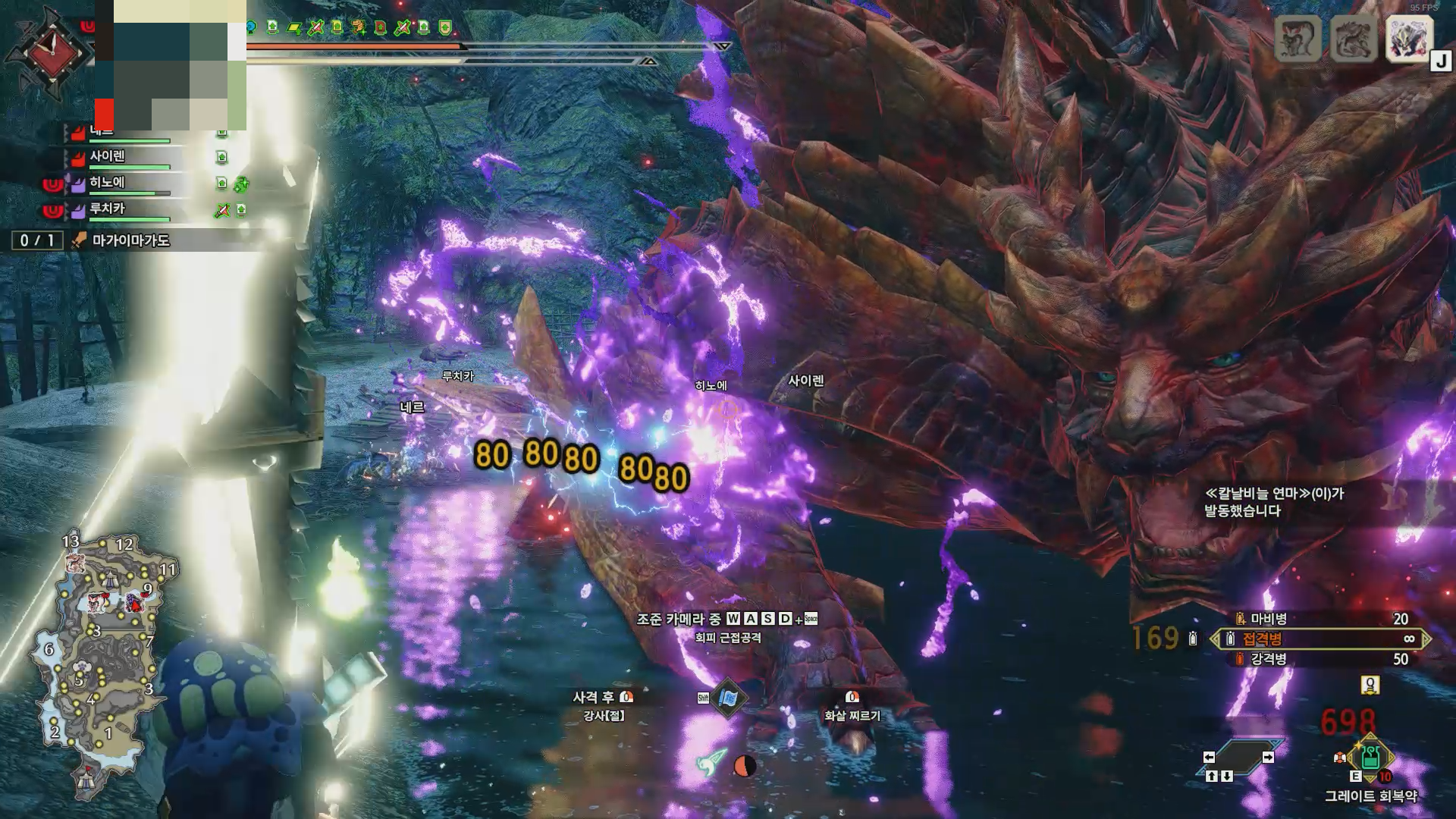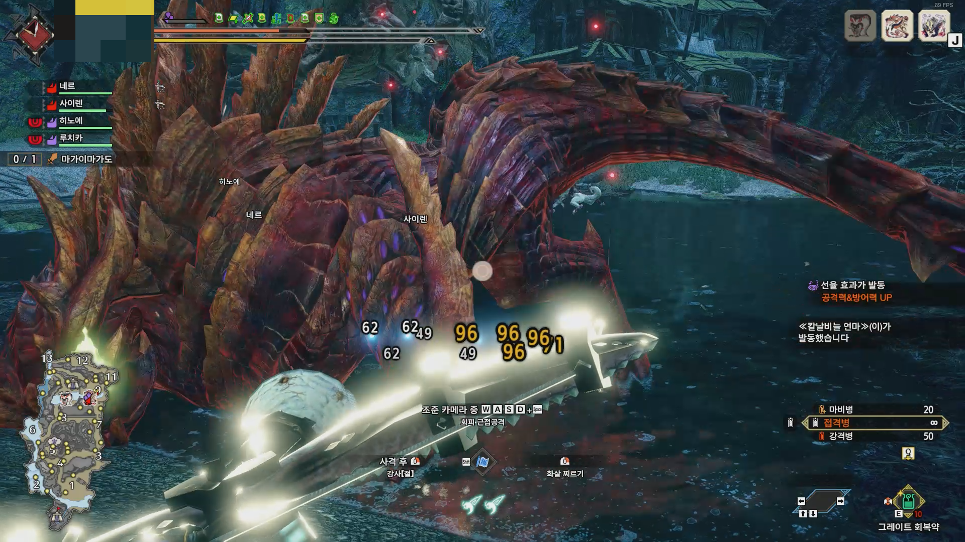 괴이 흉화 off, 광룡증 극복, 칼비연 적용, 히노에 공격력 버프 적용