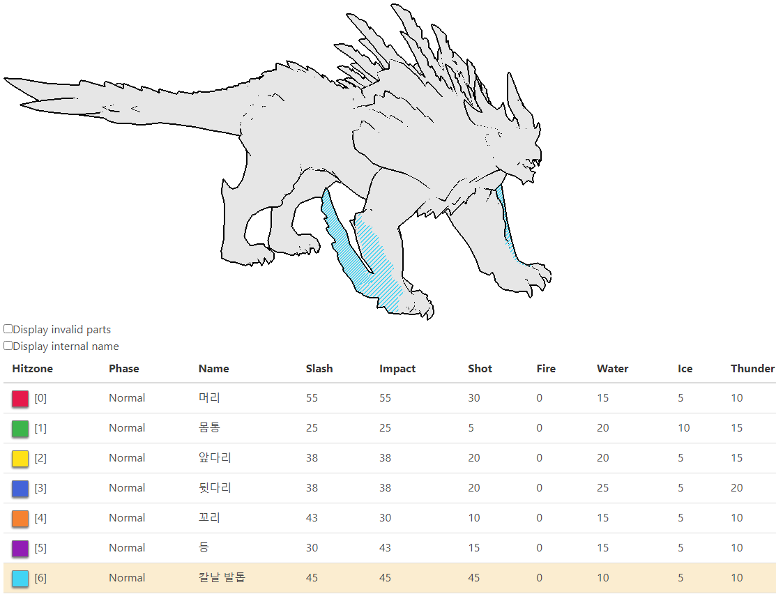 확산이든 관통이든간에 귀화가 켜진 부위를 때려야 그나마 딜이 잘나오다보니, 일반적으로 칼날 발톱과 머리 부분을 집중적으로 때리게 됩니다.