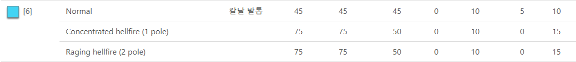 ▼ 참고용 원망 마가도 칼날 발톱 육질표 평상시, 1극 귀화?, 2극 귀화?. 원종처럼 귀화시 속성 육질이 변하는 기믹이 있다면 뇌속이 또 올라갈테고...