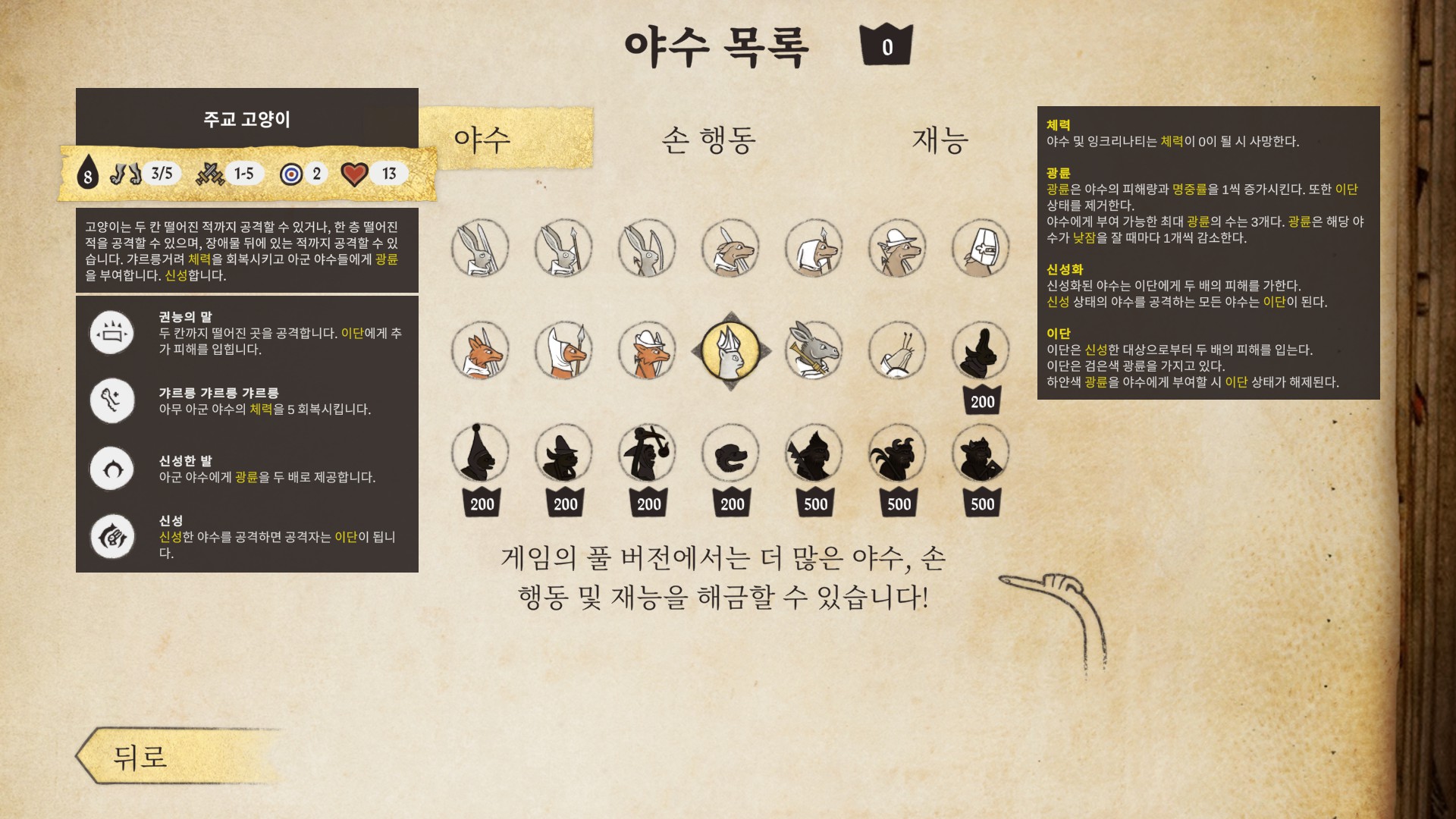 풀버전에서는 좀 더 다양한 유닛이 풀릴 예정이라고 하며, 데모 버전에서는 대충 세번째줄 유닛까지는 볼 수 있습니다.