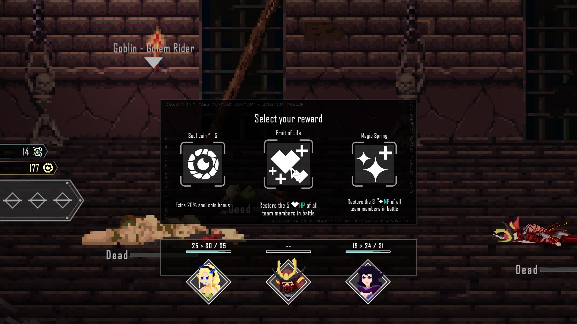 승리 후에는 몇가지 보상 중에 선택을 해야 합니다.