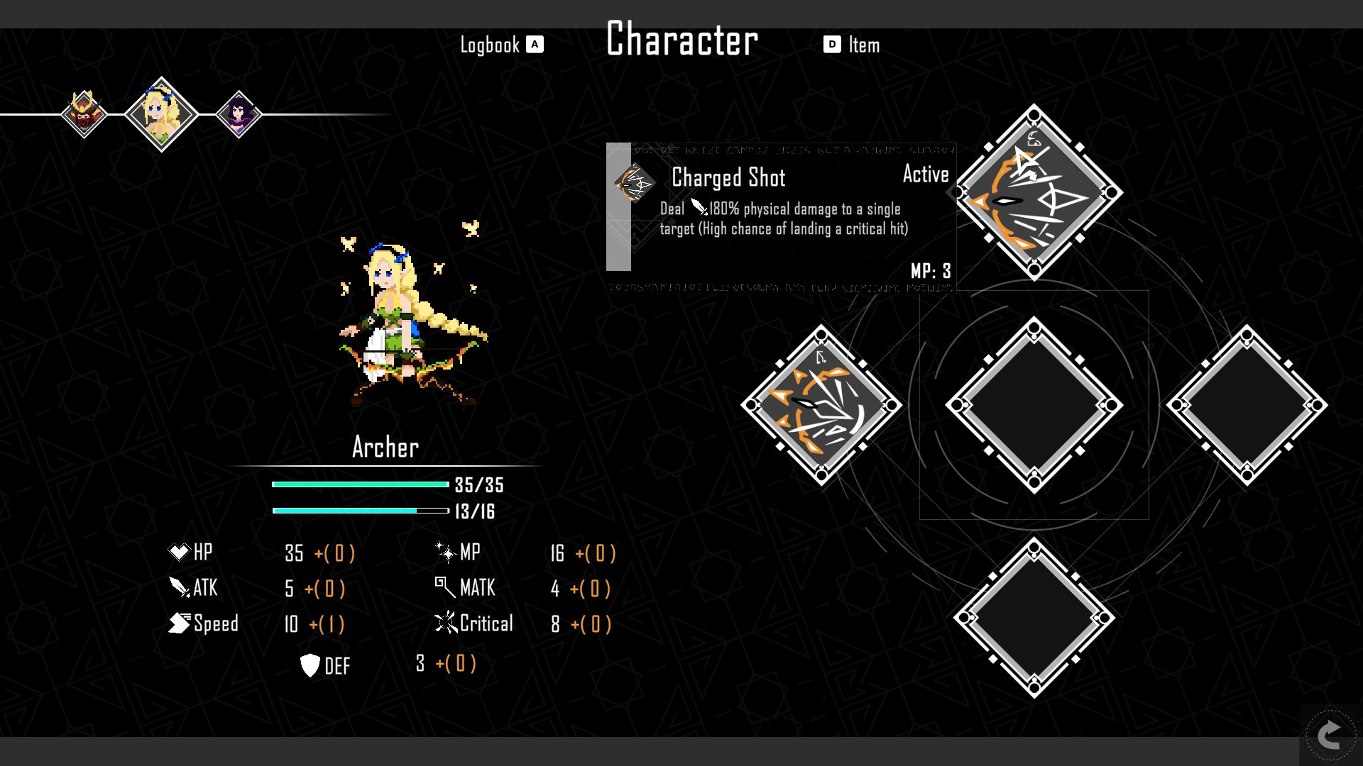 캐릭터별로 최대 5개의 스킬을 소지할 수 있는걸로 보이며, 게임 초반에는 단 2가지의 스킬만 쓸 수 있습니다.