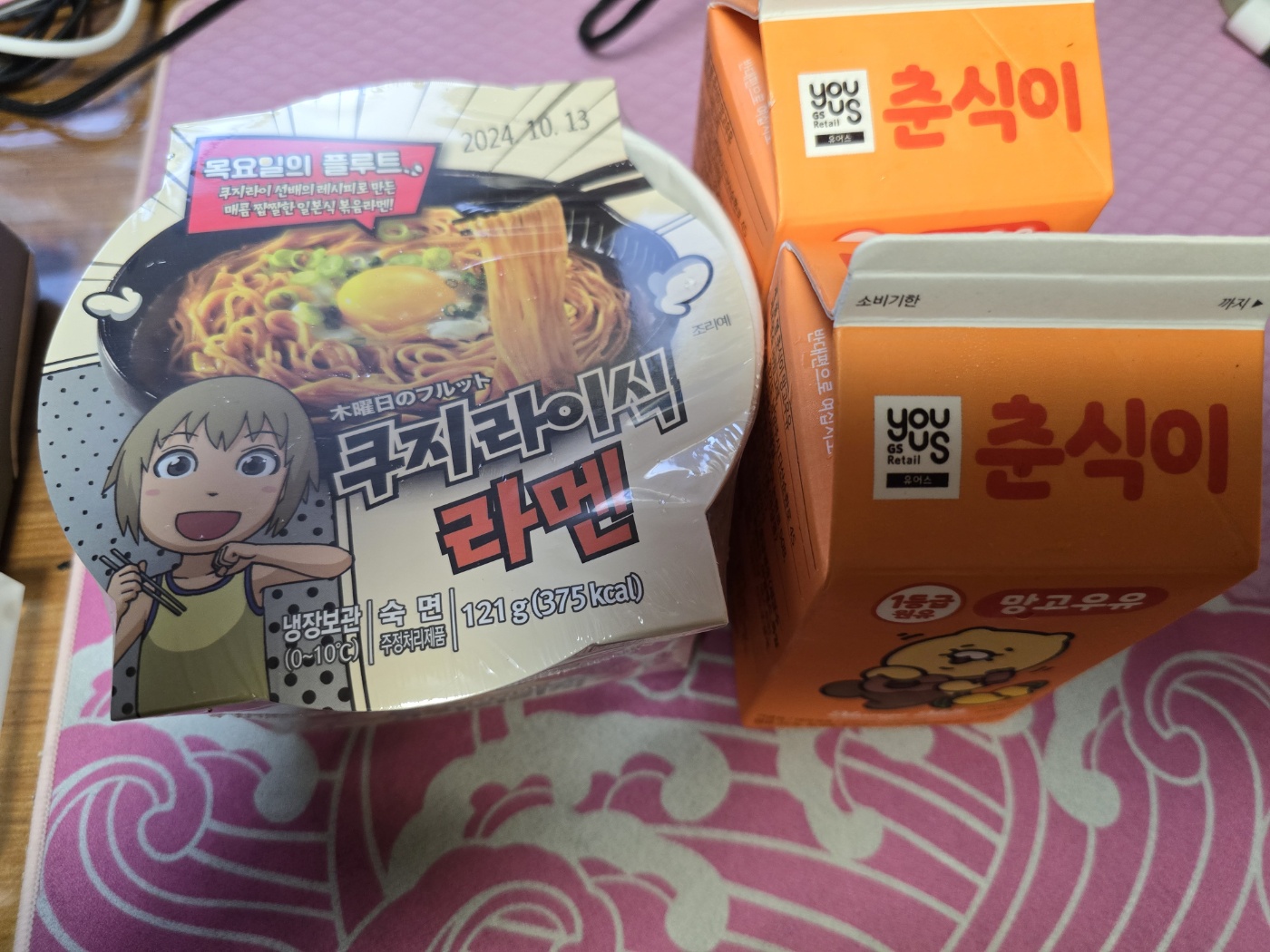 현재 쿠지라이식 라멘을 사면 감동란이나 생수를 증정하는 행사가 진행 중인데, 동네에 감동란 헌터가 있는건지 편의점에서 발주를 안한건지 내가 간 지점은 감동란이 없었다.
