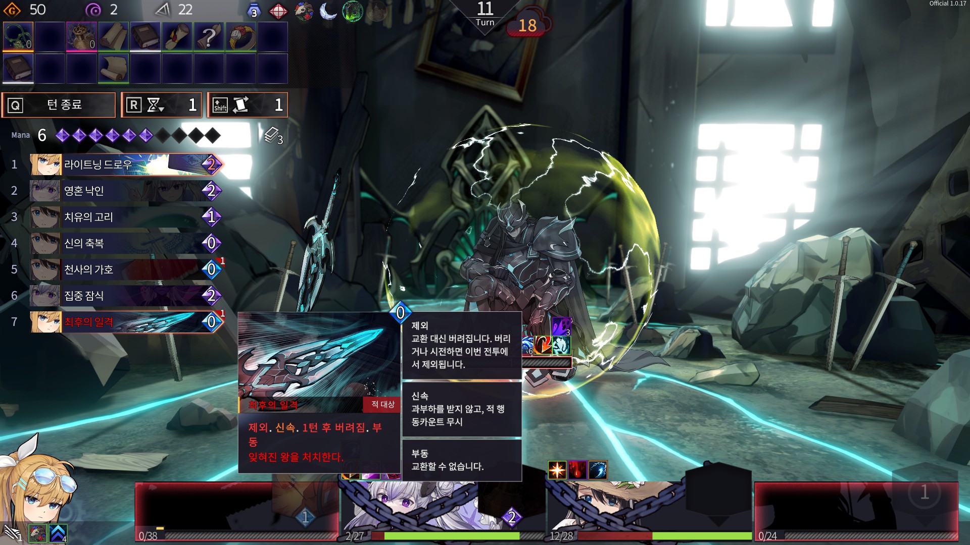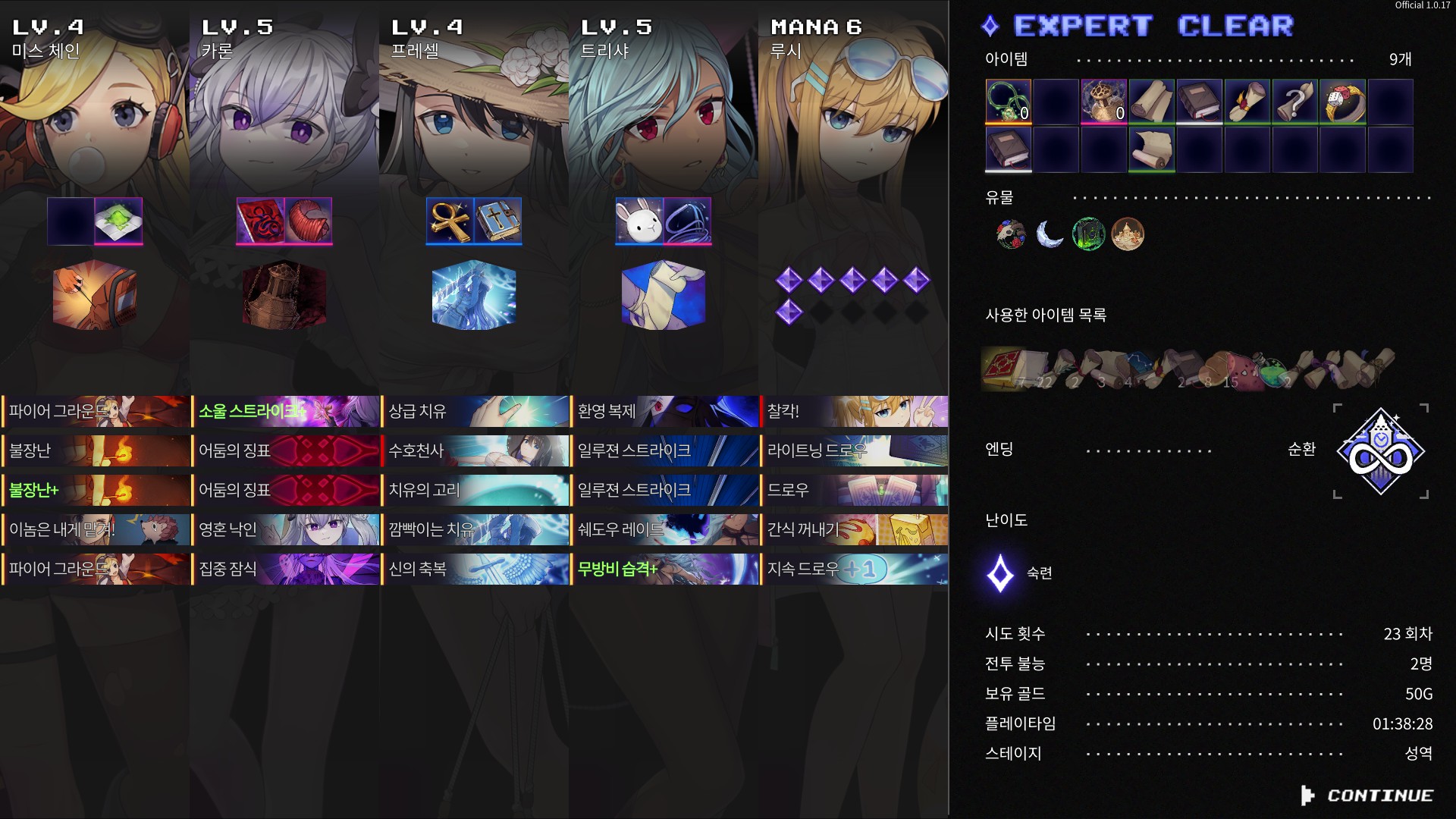 컨텐츠를 어느정도 해금한 김에 여러 캐릭터들을 돌려써봤지만, 숙련 2~3스테이지에서 시원하게 전멸하는 경우가 많았습니다. 꼴리는대로 파티를 구성했을 때는 유달리 원하는 카드, 원하는 파티원이 안나왔습니다.
