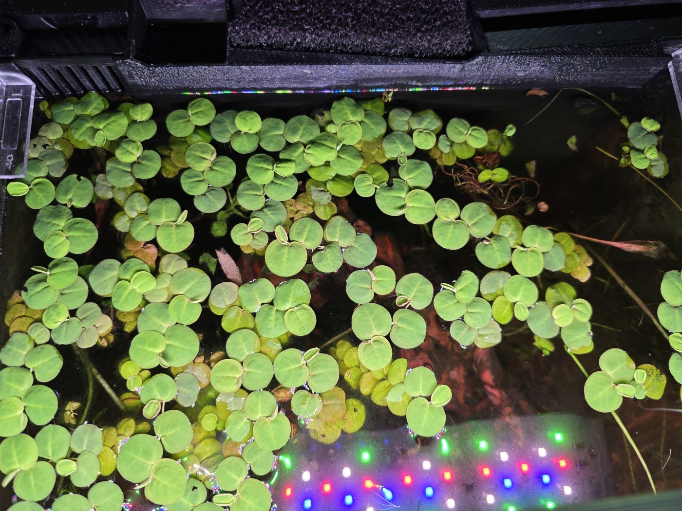 유막 제거를 제대로 하려면 부상 수초를 모두 치워야 합니다. 일반적인 걸이식 여과기에 달려있는 유막 제거 파츠도 그렇지만, 수면에 떠있는 유막을 제거하려면 부상수초를 치워야 하는건 마찬가지라서 사실 억까에 가깝습니다. 그냥 부상수초를 치우세요(..).