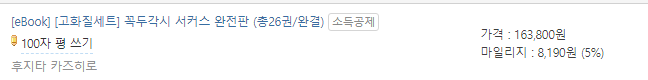 고스트 앤 레이디부터 괴물이여 춤춰라까지는 종이책으로 샀었는데, 알고보니 스프링갈드를 안샀길래 어쩔 수 없이 이북으로 구매.처음에 고스트 앤 레이디를 살 때 박스세트를 사려고 했었는데, 표기가 이상해서 착오로 스프링갈드를 빼먹은게 패착이었다.