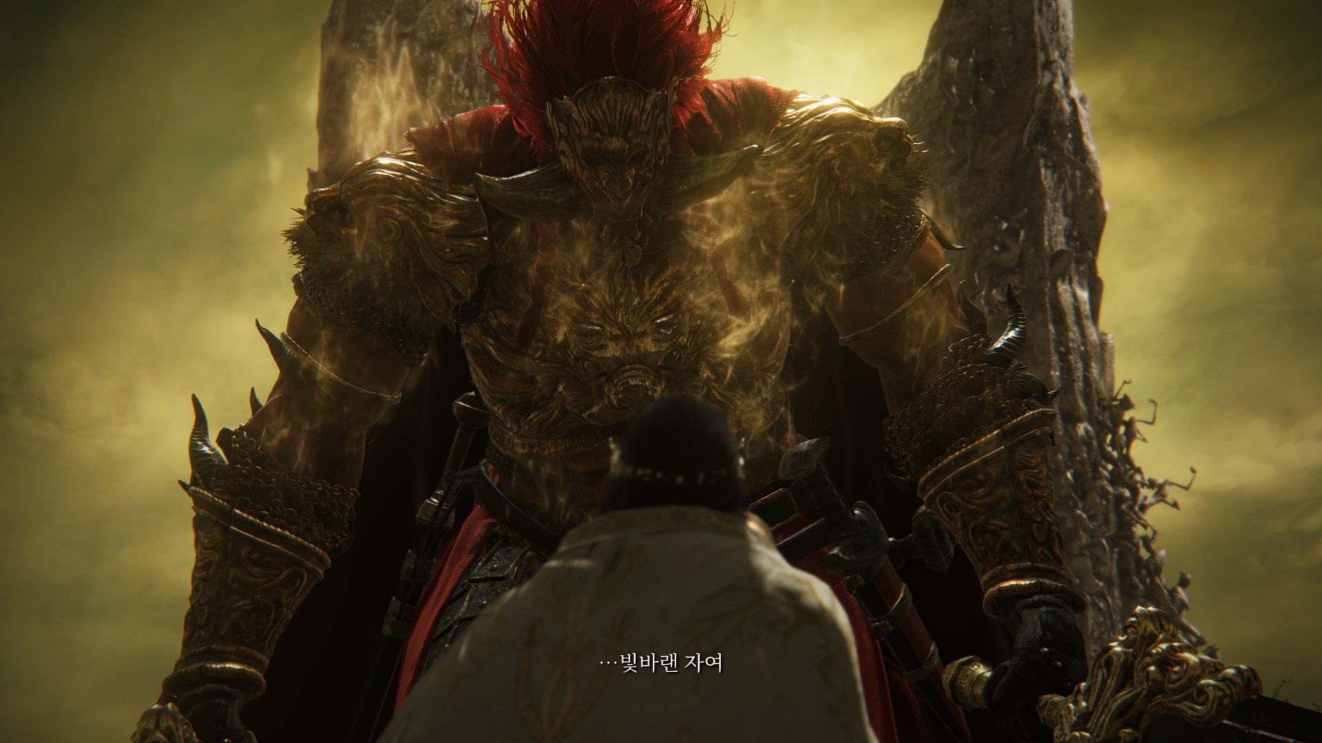 Tarnished one. Aspiring Lord of the old order. If you have known sin, if you grieve for this world, then yield the path forward to us. To I, Miquella, and my promised consort, Radahn.