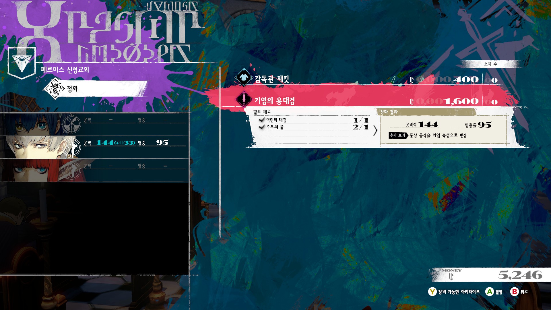 4. 주인공 포함 파티원들의 직업은 그때 그때마다 변경하시면서 플레이하는게 좋습니다. 대성당은 언데드 몬스터와 타격 약점, 빛속성 약점 등의 몹이 나오니 격투가, 힐러 등을 스왑하시면서 진행하는걸 추천드립니다.