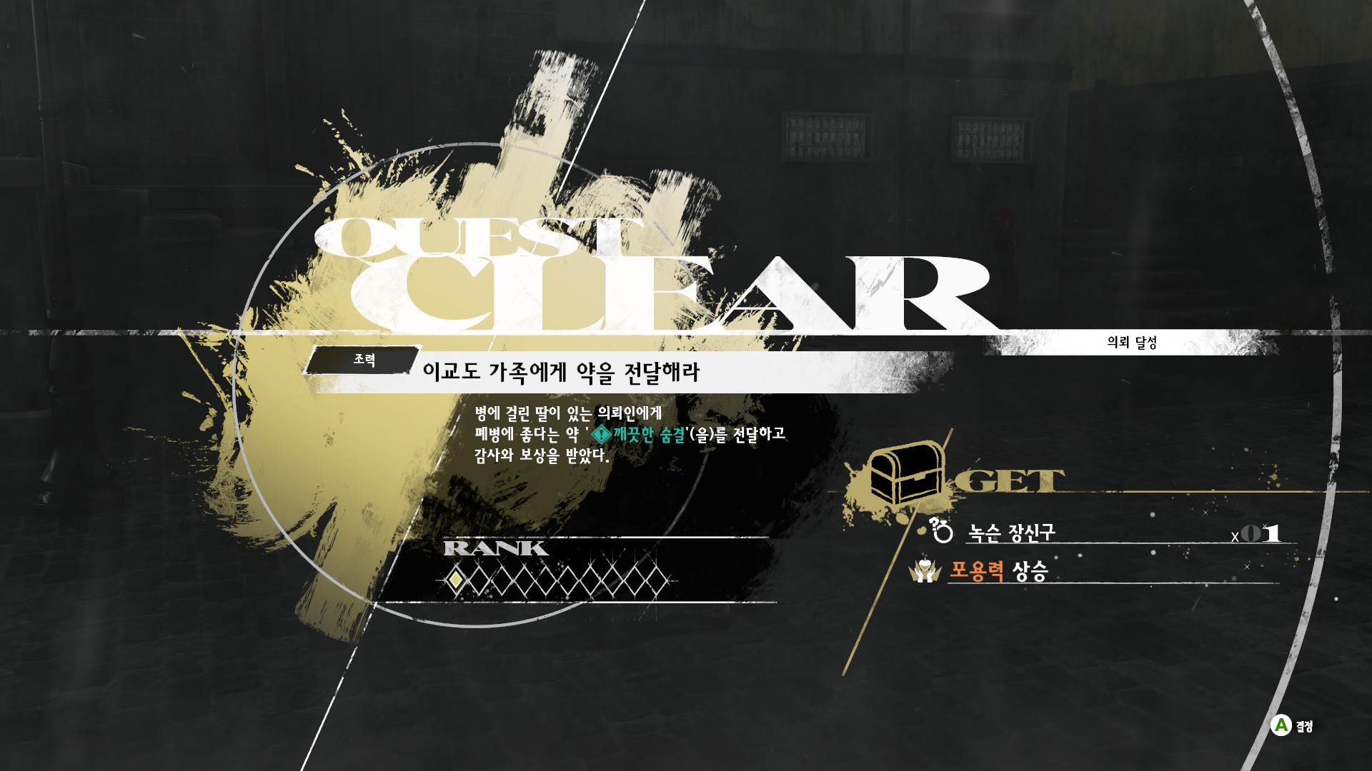 왕도에 진입 후 그늘 거리 골목길에서 배아프다고 골골 거리는 npc에게 약초 주기(1개 소모)