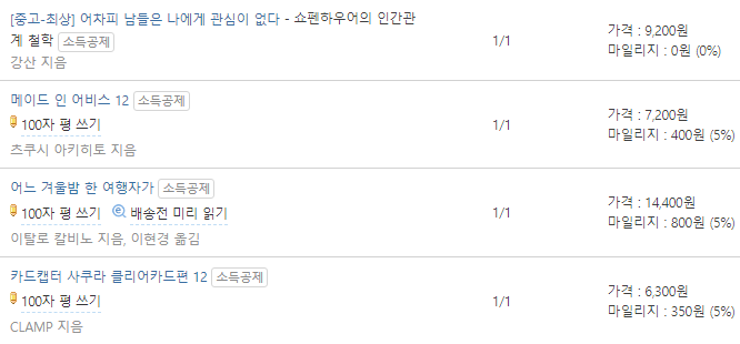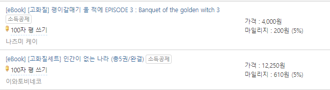 살만한 이북이 없어서 공짜로 받은 적립금 x만원 으로 산 만화