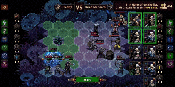 A Tactical Auto-Battler set in a Dark Fantasy world- complete with Roguelike Dungeons, a PVP Arena, Crafting and Kingdom Building.