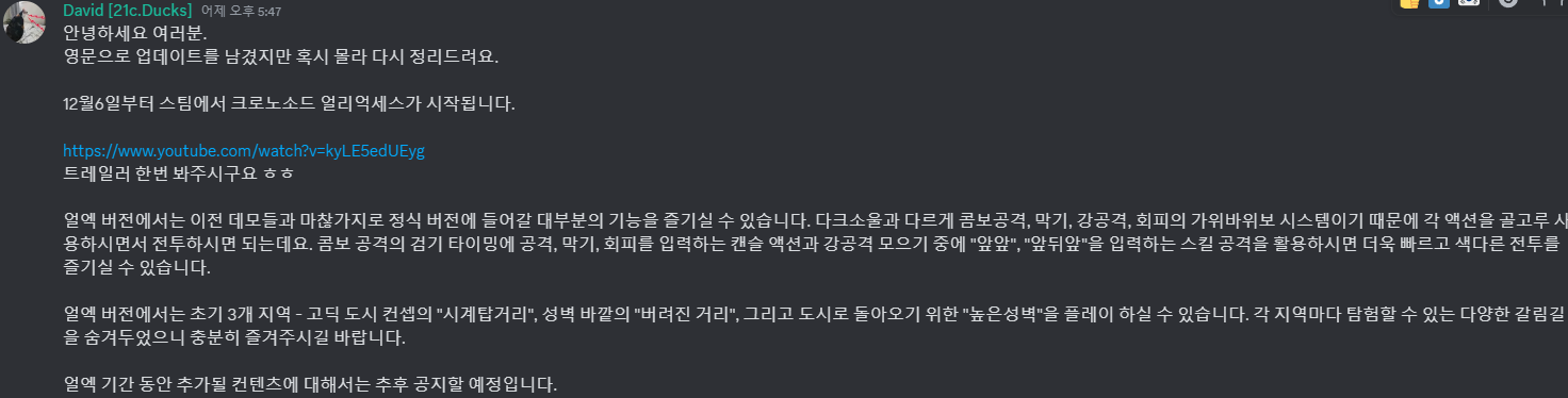 ...게임의 완성도야 알 바 아니지만 알파 버전 공개 후에 4년이 지난 후에 정출도 아닌 얼리 억세스 출시는 정신나간 짓 같습니다...만 국산 인디 게임 개발사-기꾼들을 생각하면 상대적으로 천사같기도 하네요.