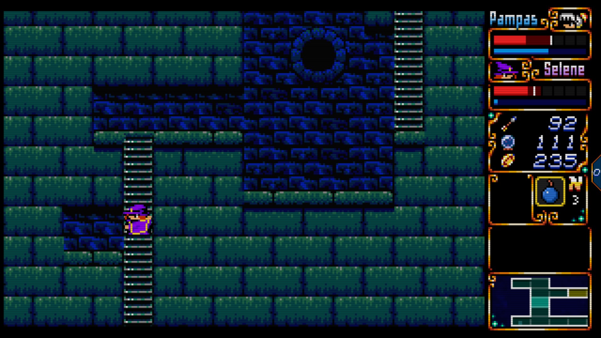 마성전설2편의 오마쥬답게 팜파스 앤 셀레네의 외견은(UI나 그래픽) 16bit풍이다.