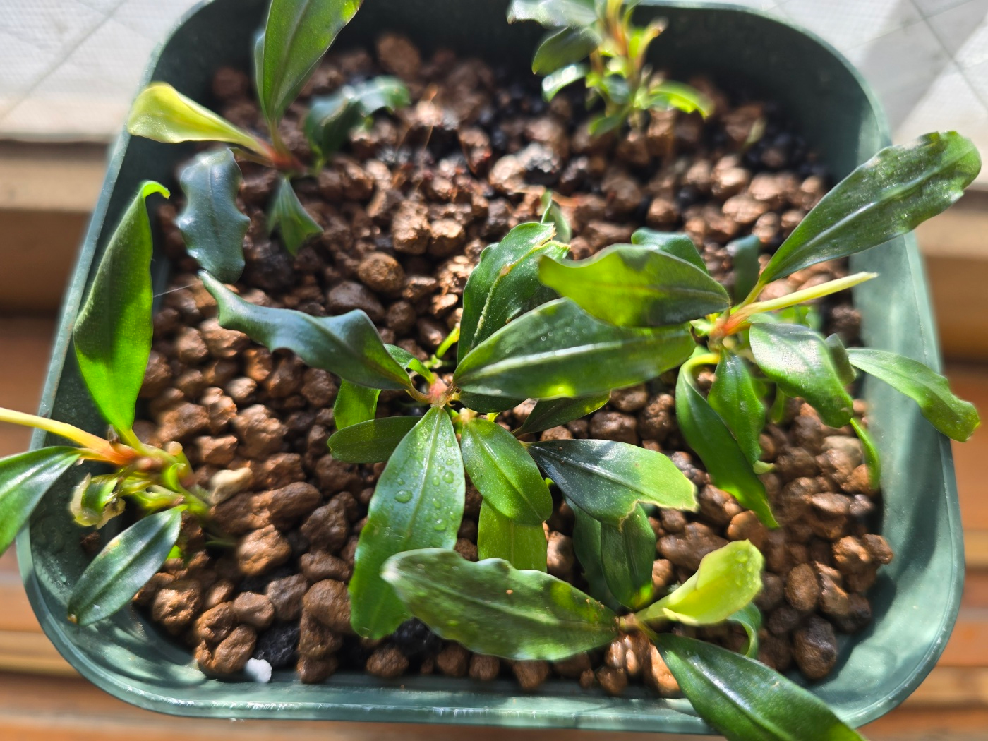 뿌리 받는 용도로 수태에 던져놓은 벌브, 조배개체들은 조명이 없어도 잘자라길래 시험 삼아 이 풀통의 조명시간을 8시간>6시간으로 변경해봤었다다. 수태 속 부세들 때문에 음성 식물들은 빛이 별로 없더라도 잘 자랄 줄 알았는데, 일반적인 환경에서는 신엽이나 꽃봉오리가 매우매우매우 늦게 성장하는 것을 확인할 수 있었다. 개중에는 신엽이 3주가 지나도 완전히 펴지지 않는 경우도 있어서, 조명은 다시 8시간으로 변경.