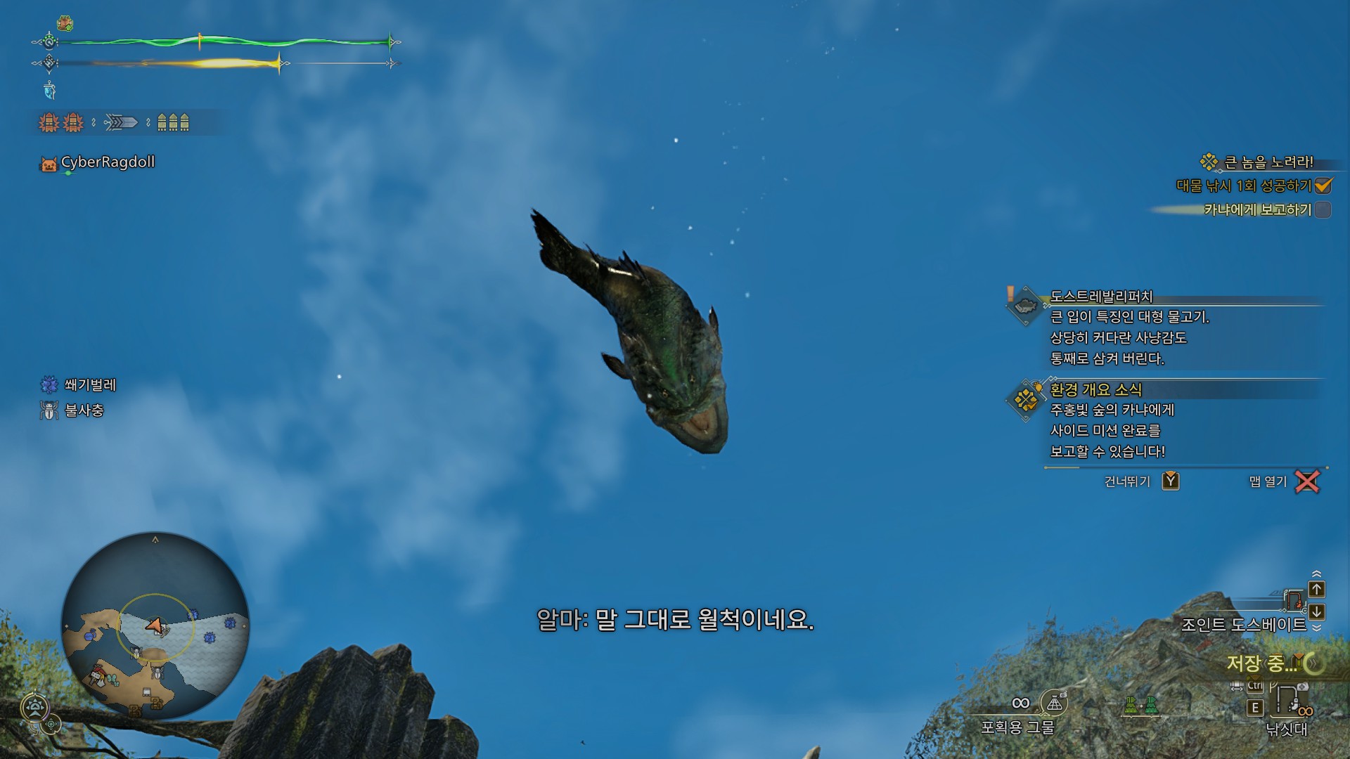 만약 물고기가 헌터 반대쪽으로 점프하는 상황이 나온다면, 튜토리얼을 참고해주세요.