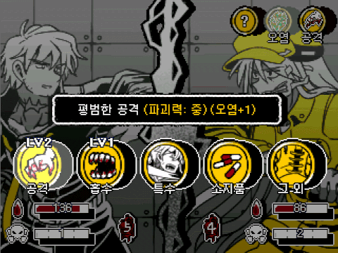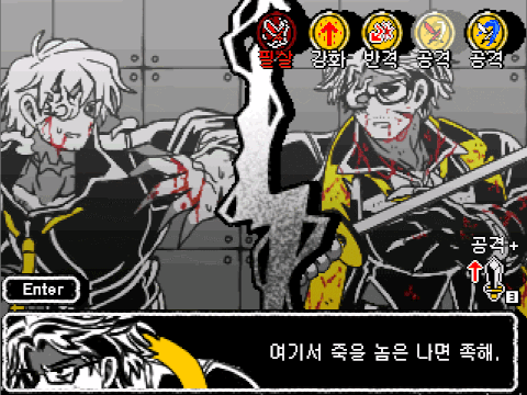 * 상황에 따라, 살점이 떨어져나가는 묘사가 존재함.
