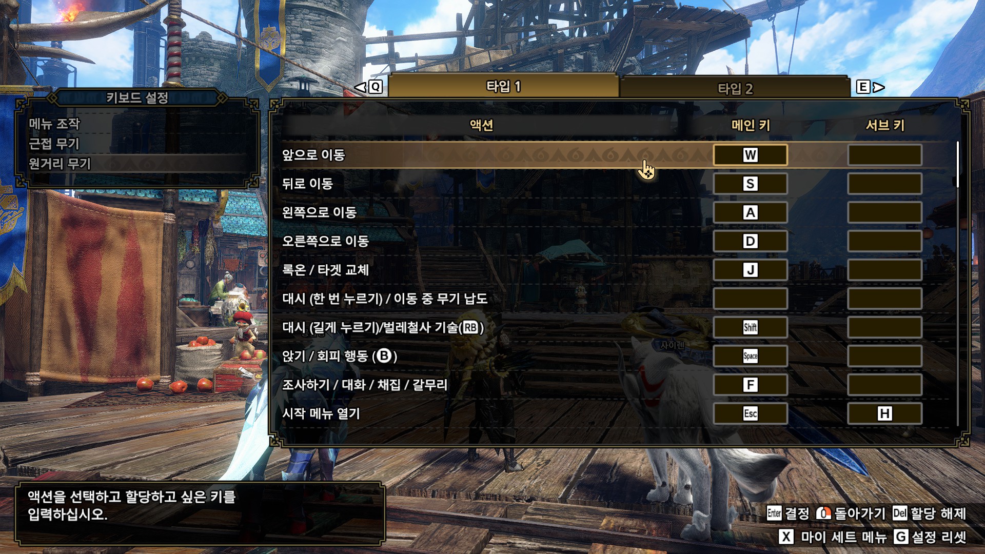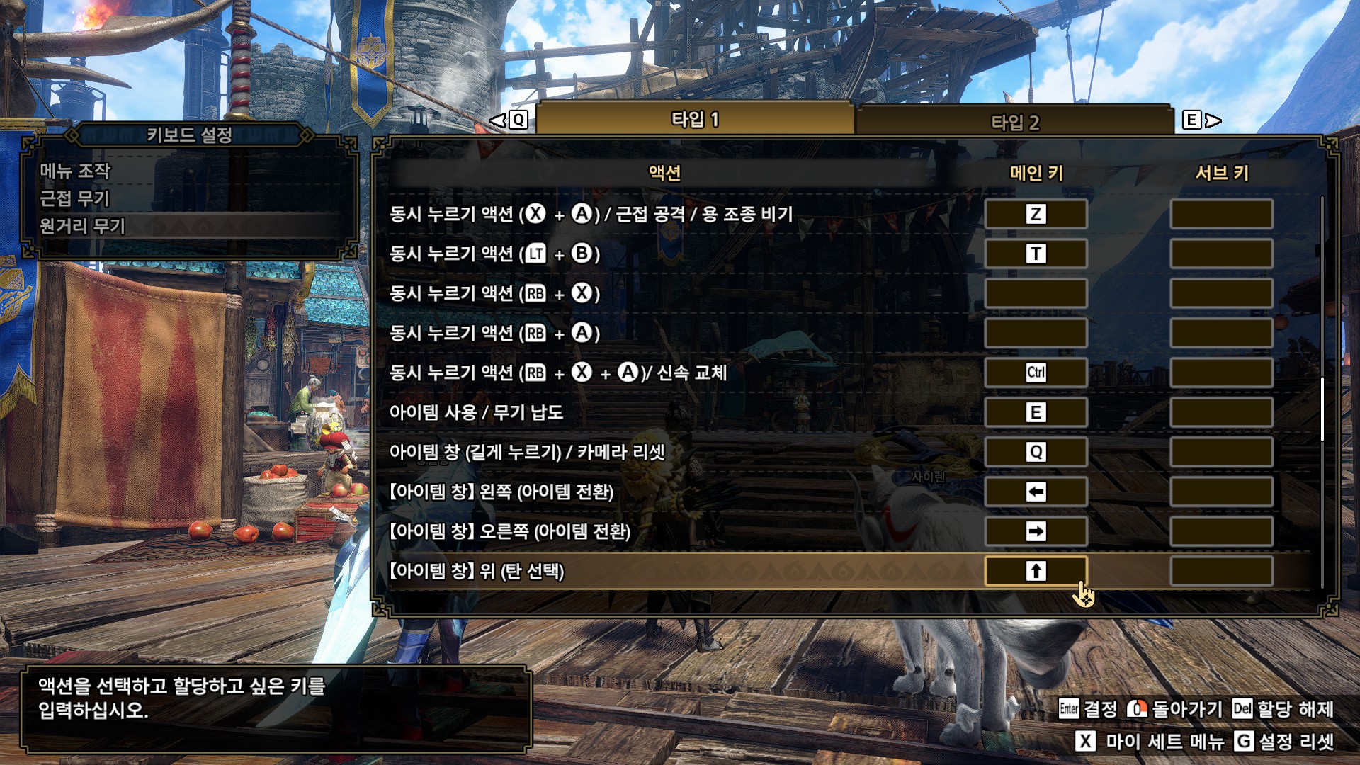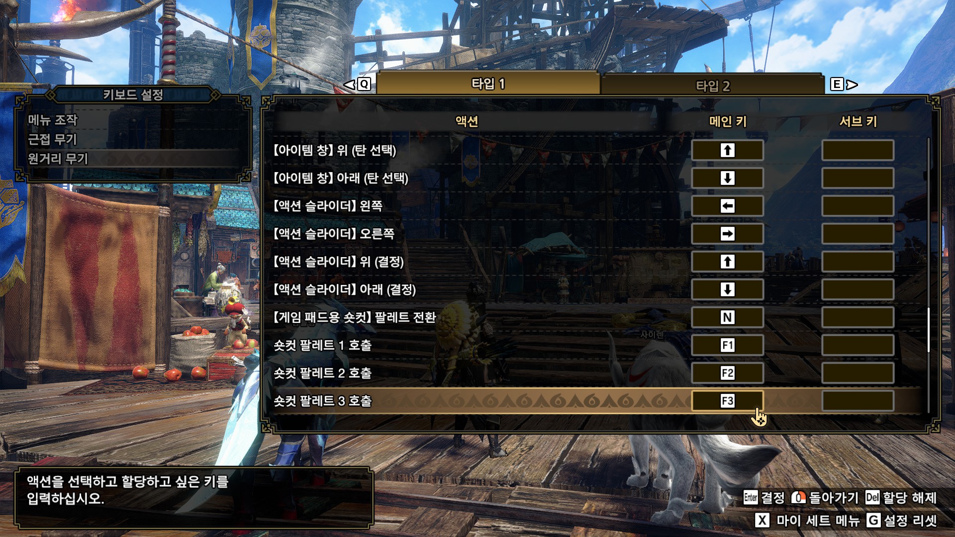 키보드 설정 교체1 액션 슬라이더(방향키로 액션 슬라이더 이동)