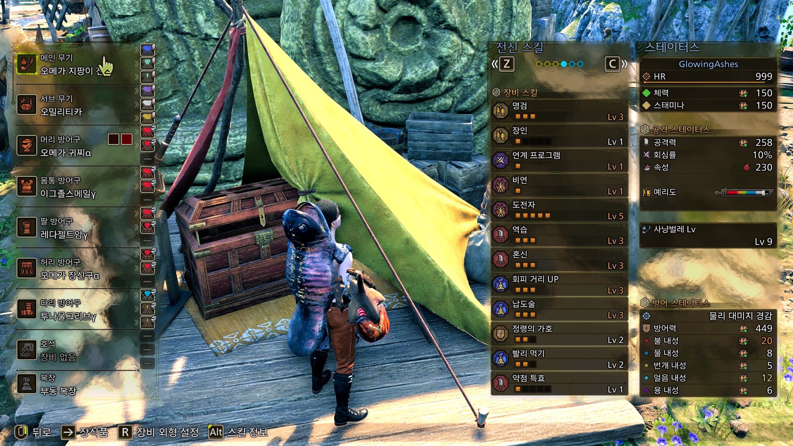 해당 스샷은 오메가를 잡는다고 회거를 3까지 넣었는데, 귀마개1이 필요한 몬스터를 잡는다면 회거를 2로 낮추고 귀마개1을 챙길 수 있습니다