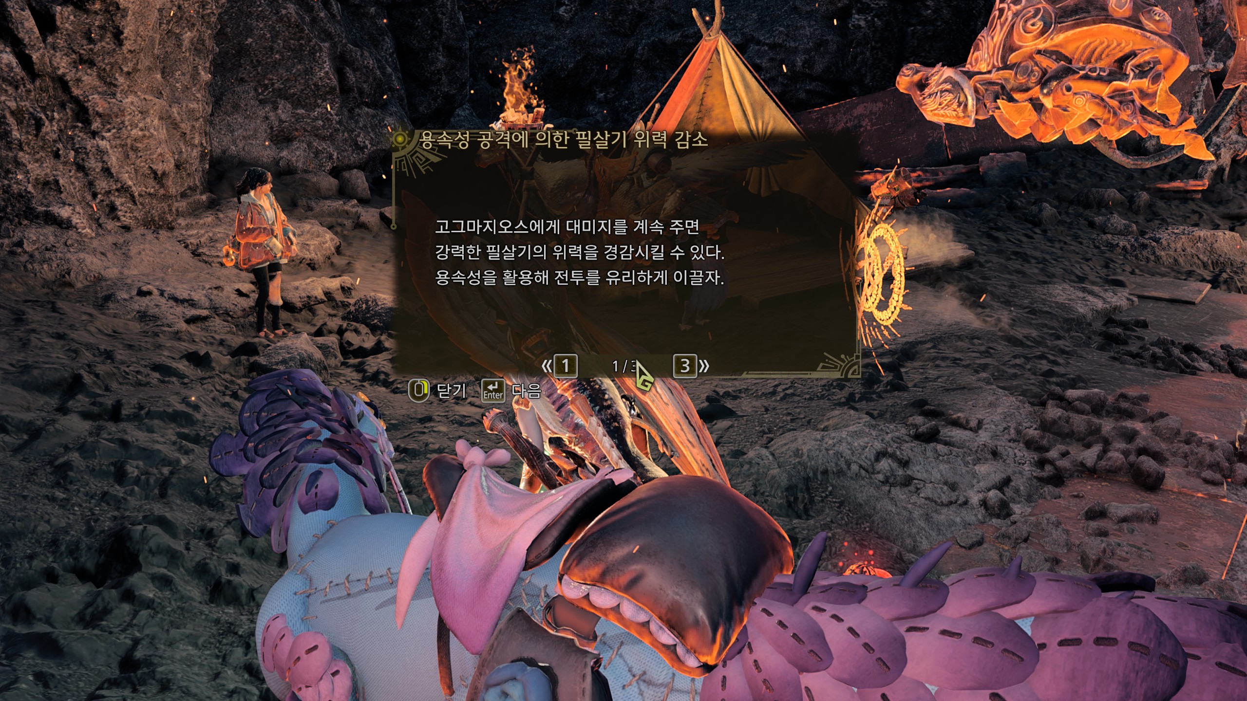특히 마지막 페이즈에서는 용속성으로 딜 누적을 해야 전멸기를 피할 수 있으니, 무기는 화속/용속 두종류를 준비해야 합니다.
