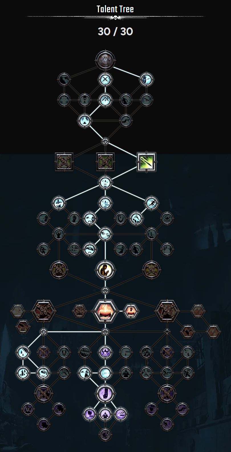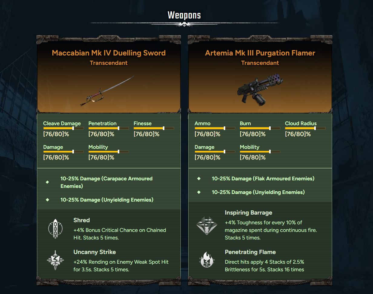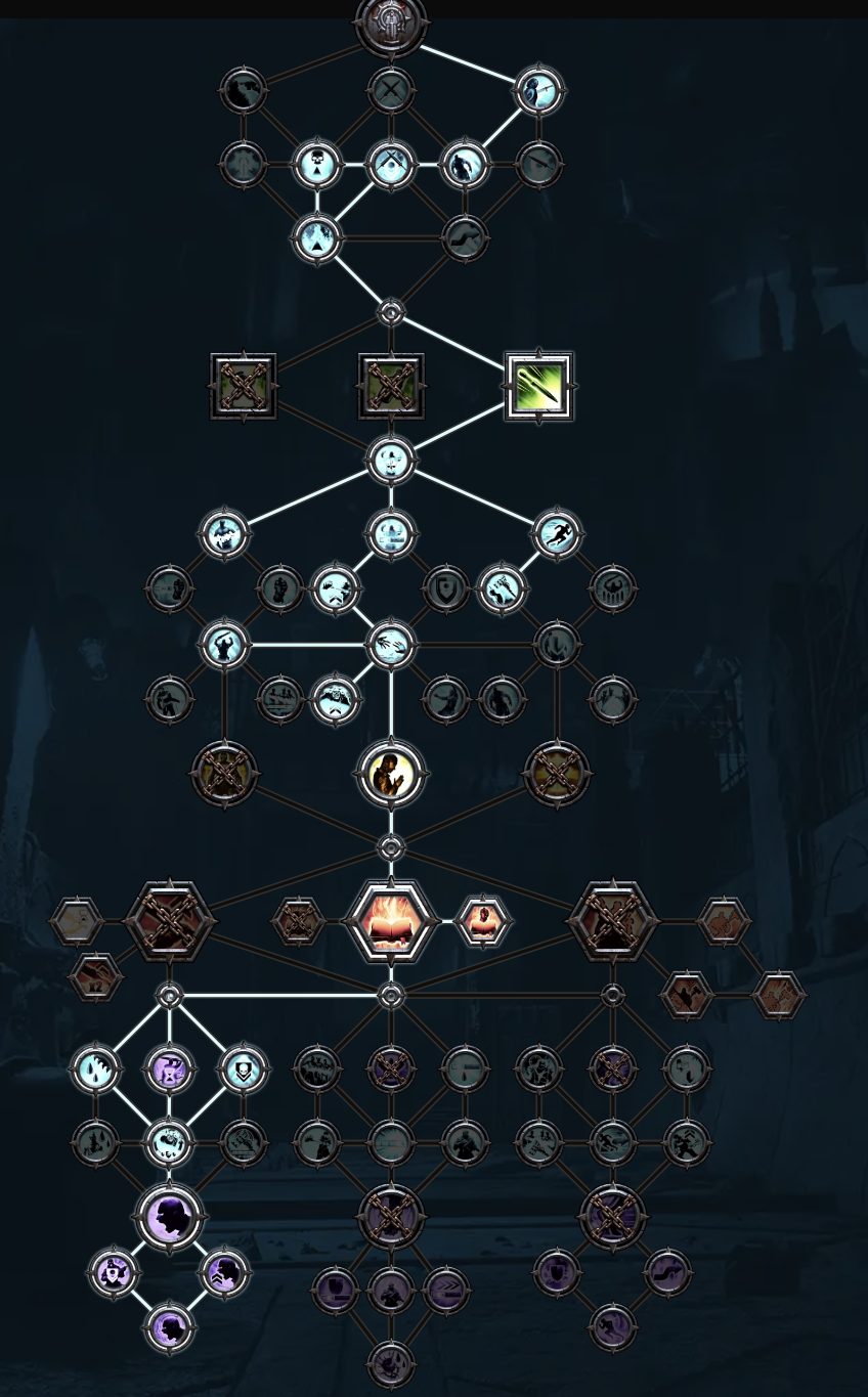 첫줄 가운데 특성 withering fire(한국명이 뭐였나 기억이 안나네요)는 한번의 공격으로 여러명을 때릴 수 있는 무기만 효율이 좋습니다. 결투검의 경우 5% 증뎀 수준이라 그것보다는 오른쪽의 백스텝 관련 특성을 추천드립니다.