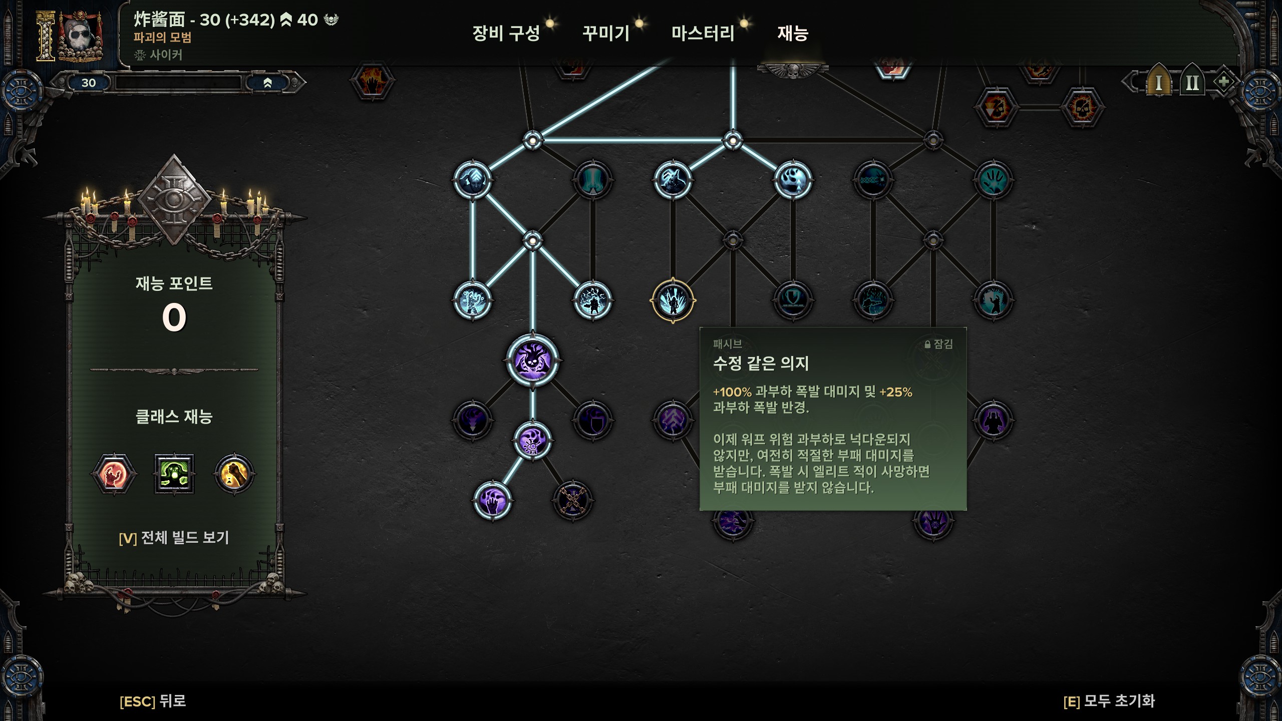 어쨌든 클리어를 했지만, 클리어 이후에도 도저히 이해가 되지 않는 세팅이었다. 혹시 순결 질럿처럼 사이커도 부상에 메리트가 있나 싶어서 스킬을 찾아봤지만, 당연하게도 시너지가 나는 특성은 없었다.