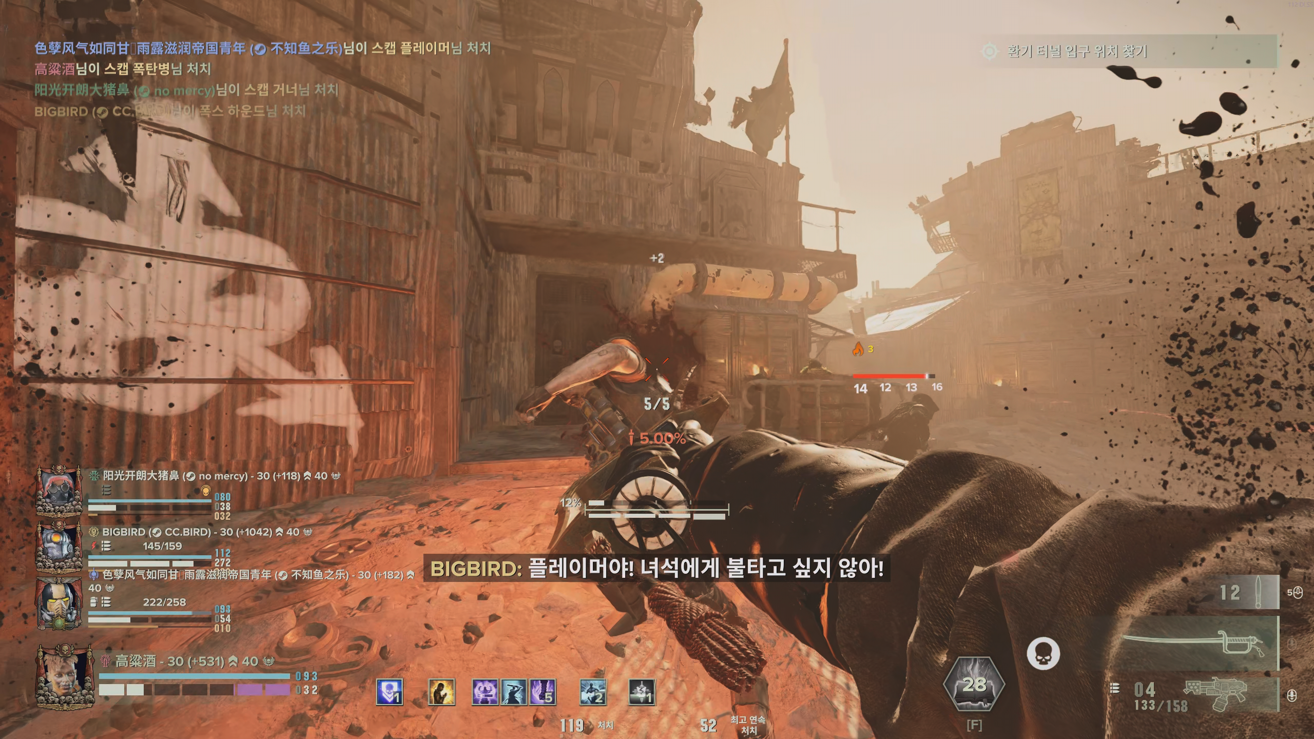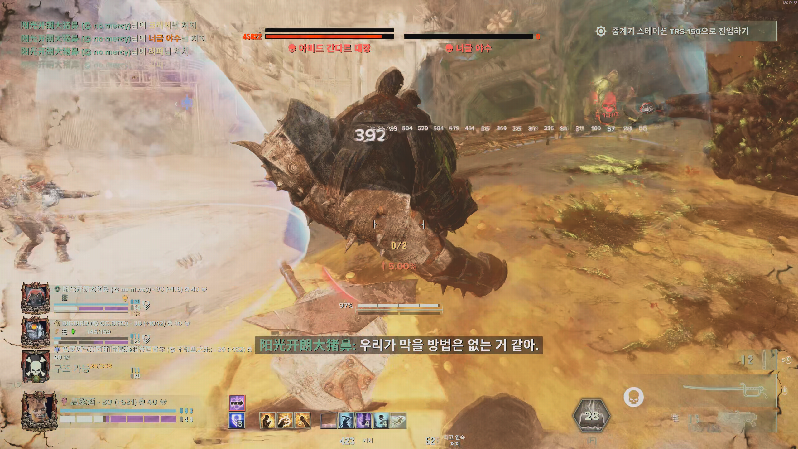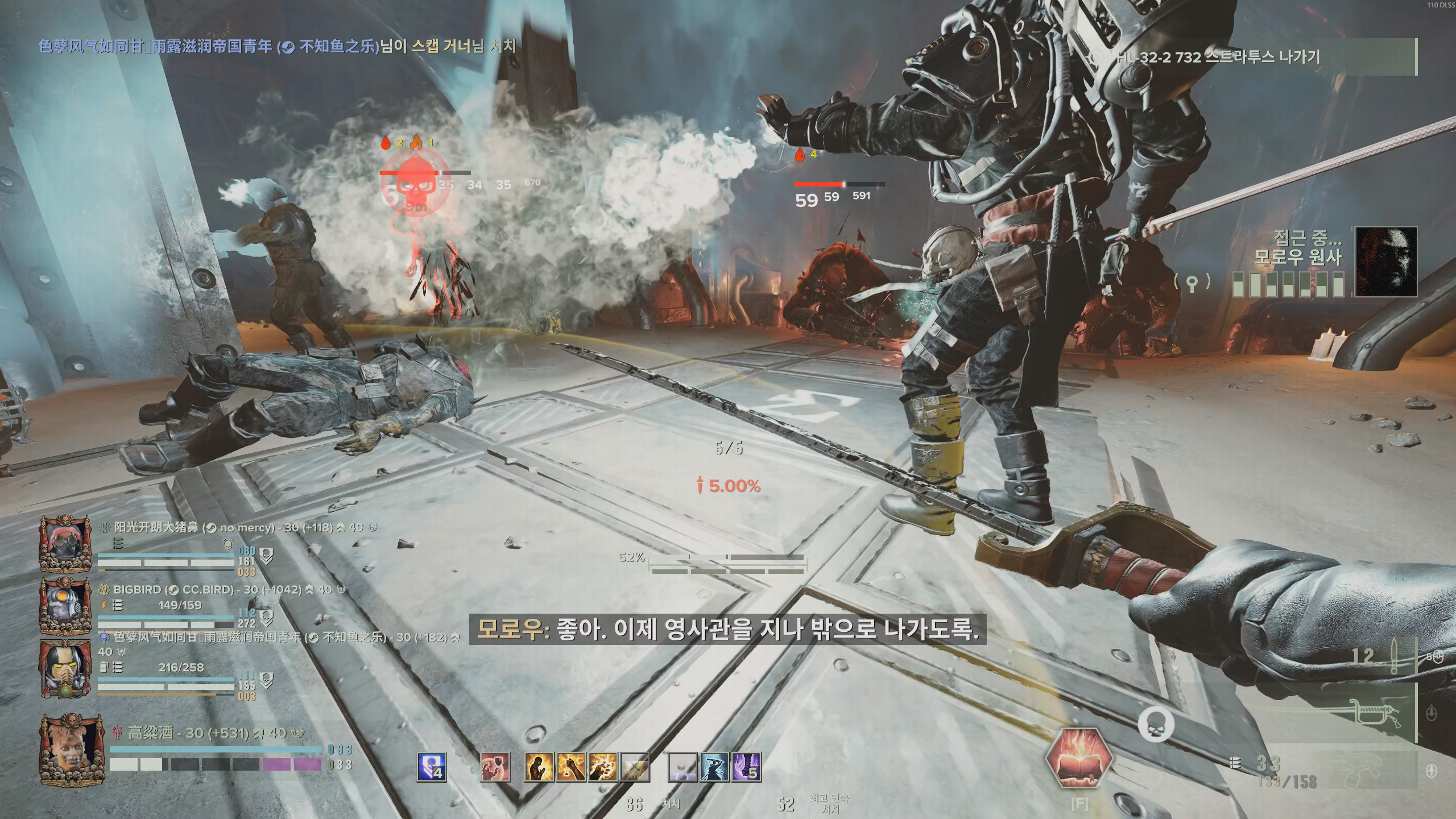 이후 카오스 스폰을 처리했지만, 어째선지 돔 안에 불장판이 깔렸고, 문 안쪽에서는 지형 때문에 베테랑이 문 바깥의 보머들을 잡기 어렵기 때문에 밖으로 나가서 보머를 따고 합류하기로 했다