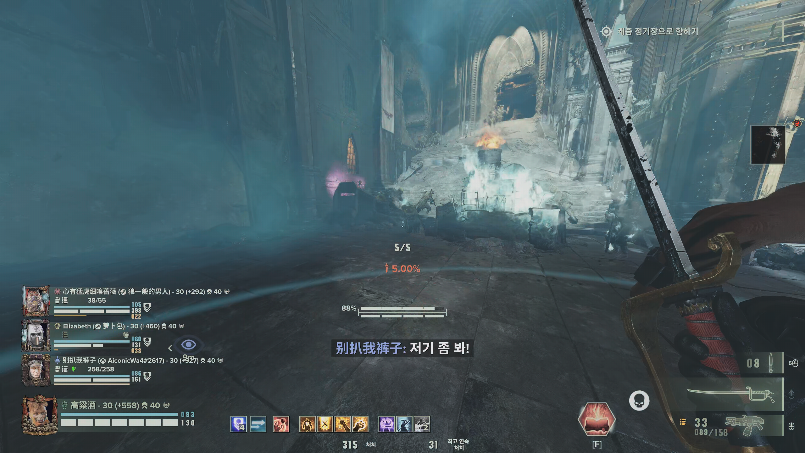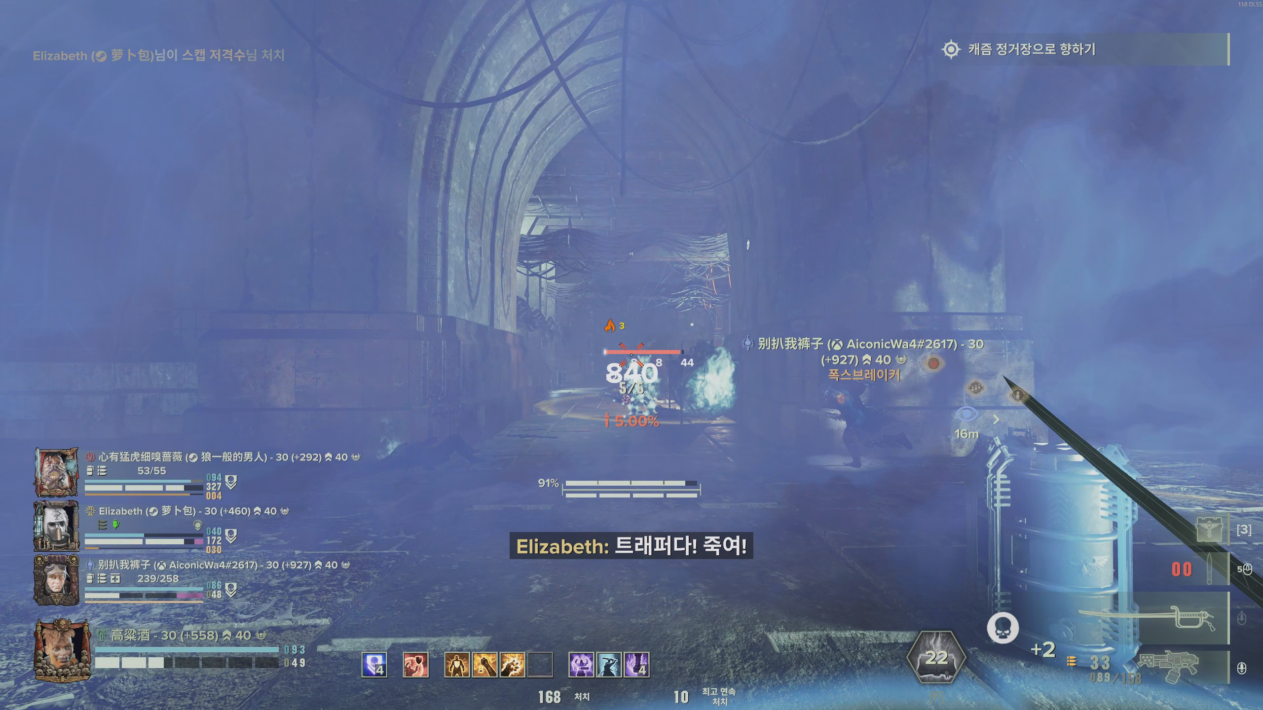 보통 앞에 리퍼, 거너, 슈터, 뱃살단들이 포진해 있을텐데 당연하지만 파티원들이 한꺼번에 진출하는게 아니면 공격을 시작하면 안됩니다.