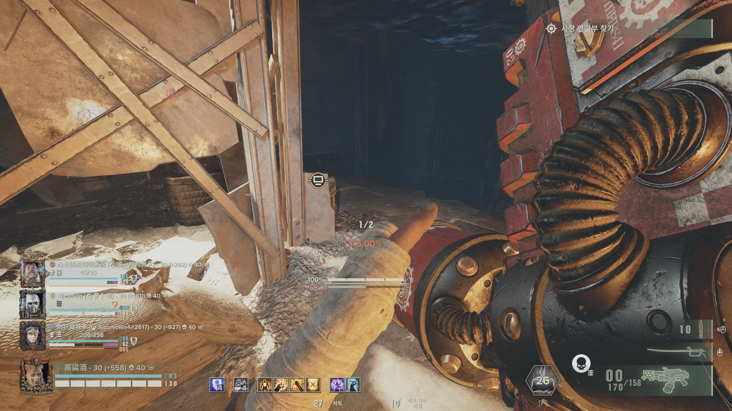 참고로 스샷 기준 오른쪽 기차 안에 엘리트들이 포진해 있는 경우가 많기 때문에, 기차 안의 적도 정리를 하고 전진해야 됩니다