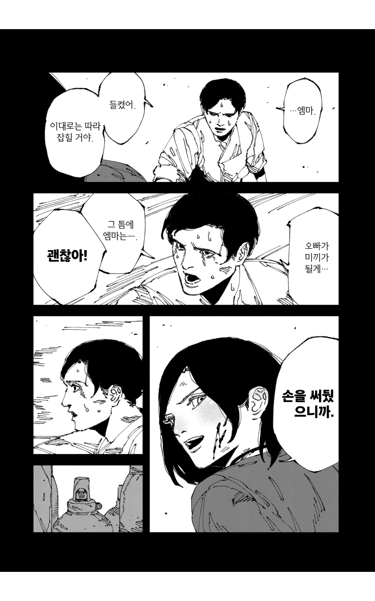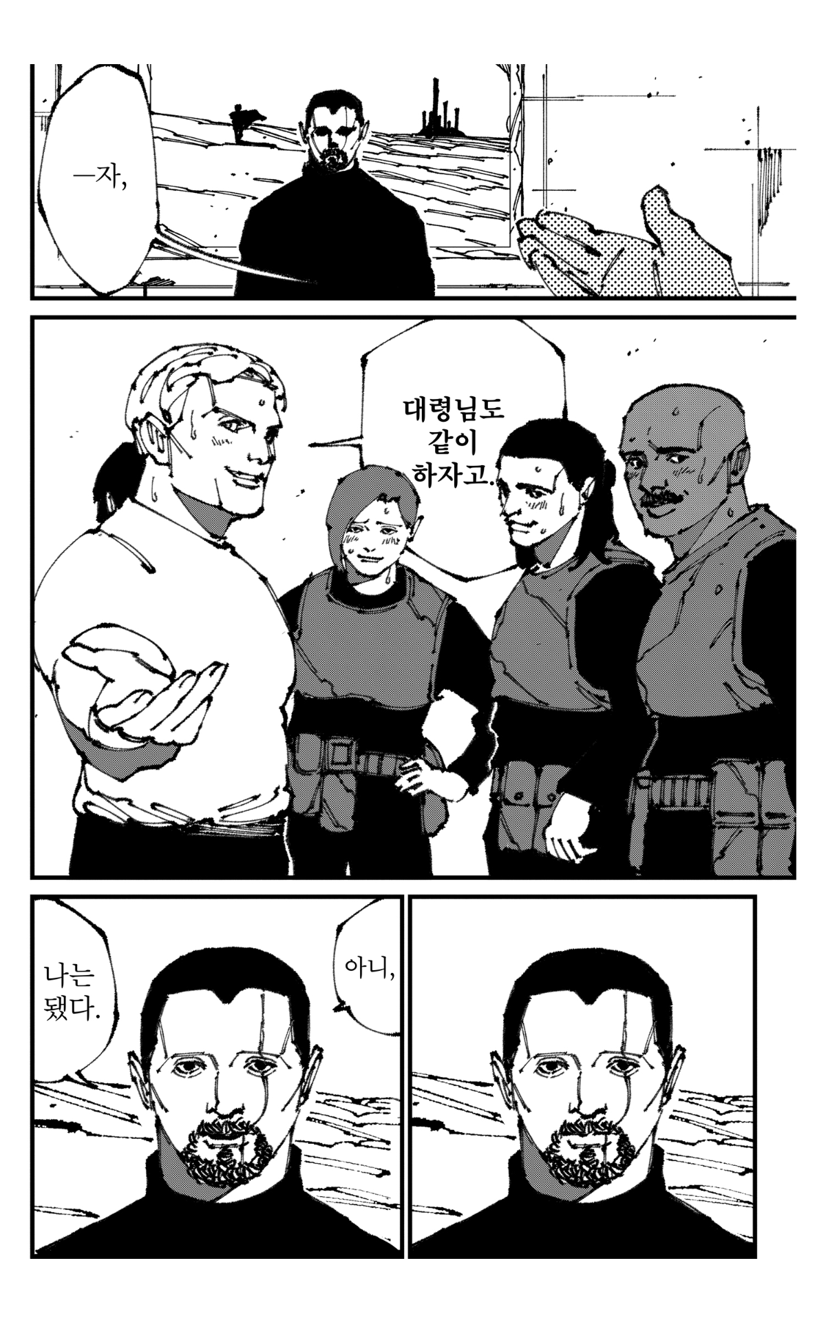 이런 개그를 좋아하긴 하지만, 5페이지에 걸쳐 그릴만한 칠 개그는 아닌 것 같기도 하고(...)