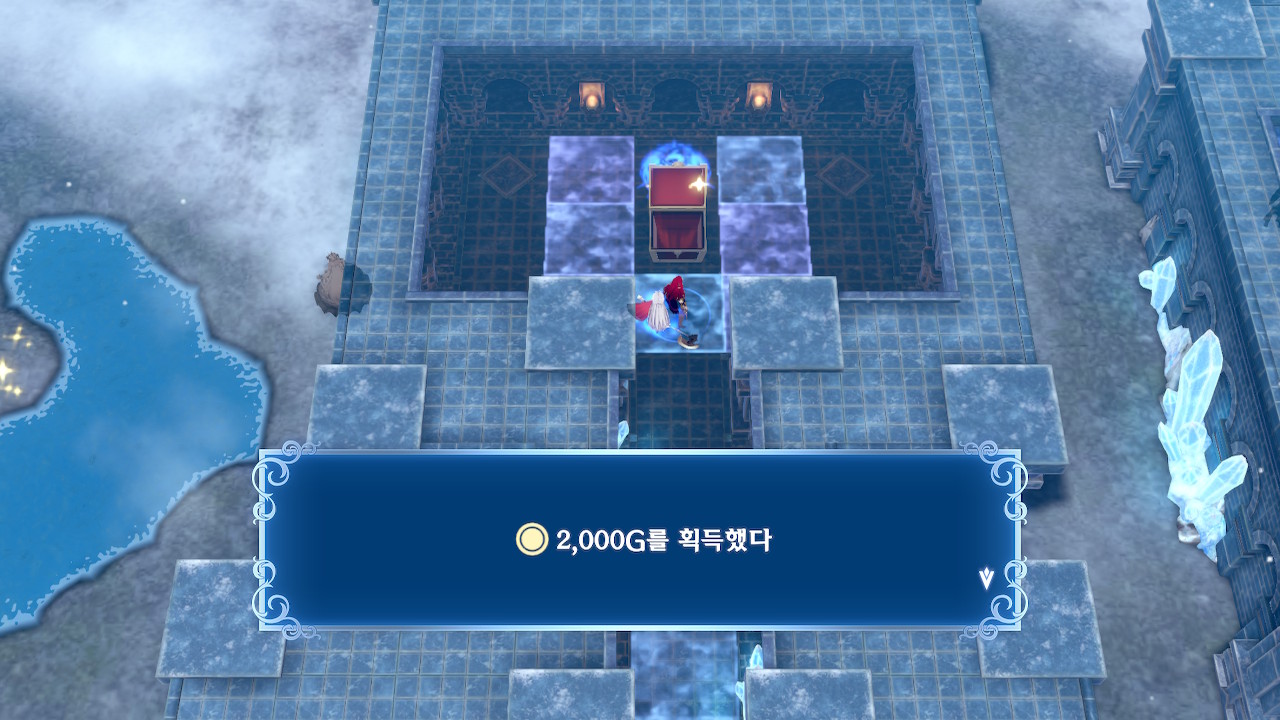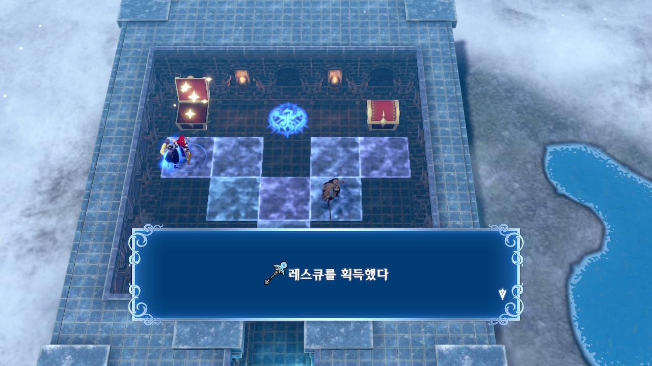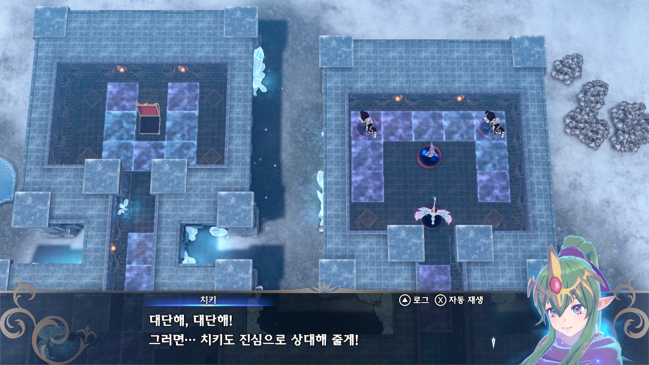 ② : 왼쪽 보물상자는 레스큐 지팡이(아군을 사용자 옆으로 불러들이는 효과), 오른쪽 보물상자는 워프 지팡이. 마법진 위에 유닛을 올려놓으면 치키가 있는 방의 봉인이 해제됨.