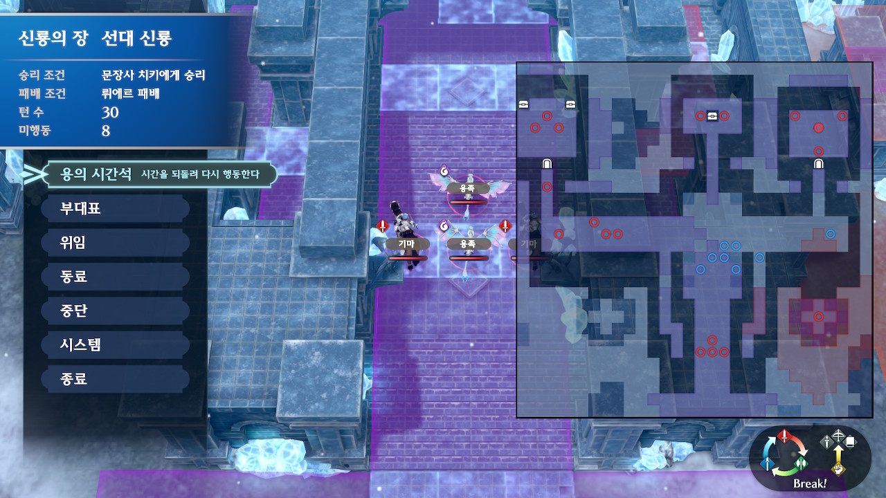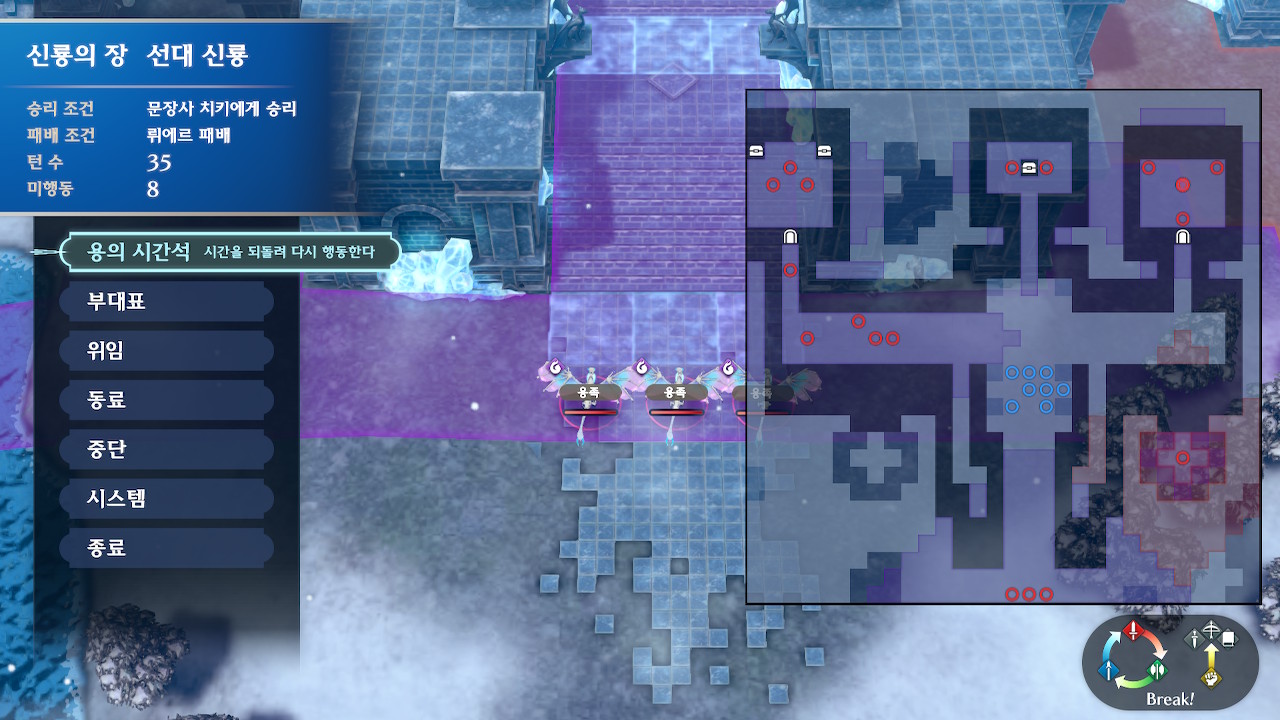 -적군 증원은 14턴에 용2마리 + 잡졸 2마리(기마병 혹은 마도병)가 섞여서 오는걸 시작으로, 매 3턴마다 새로운 증원이 도착. 이 뇌절은 35턴에 종료되며, 마지막 뇌절은 용3마리가 한꺼번에 등장하는 식입니다