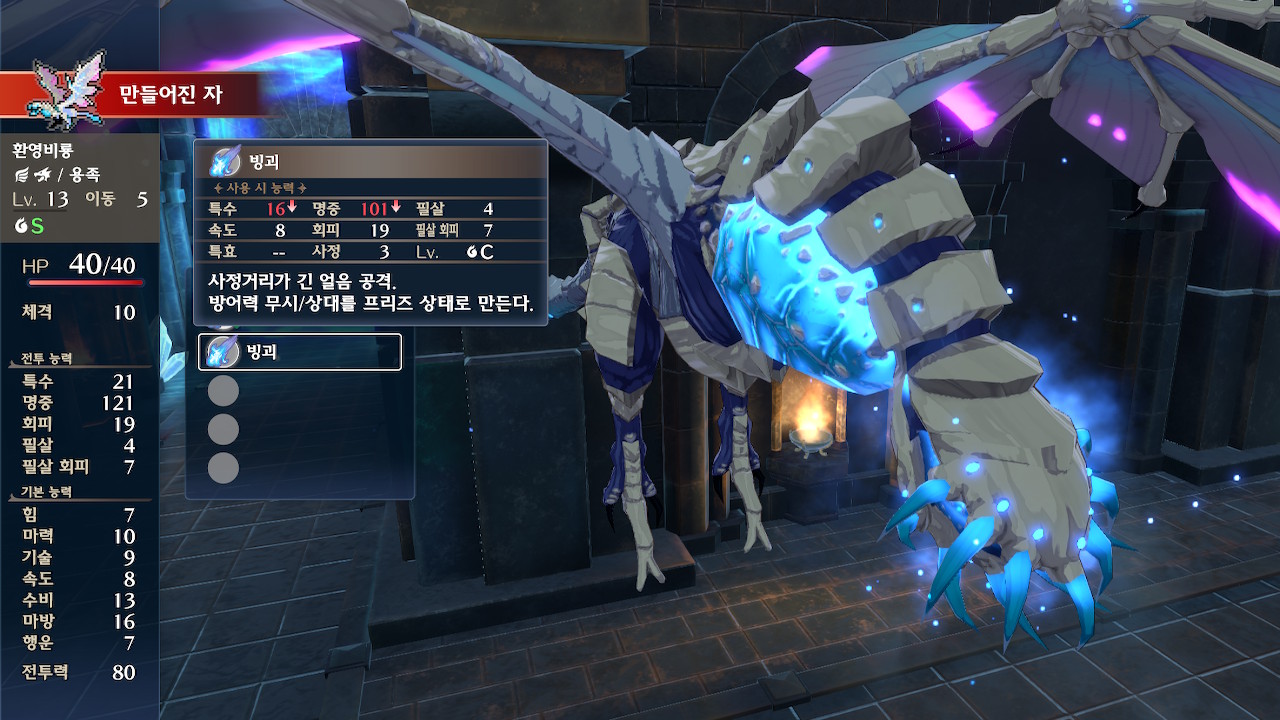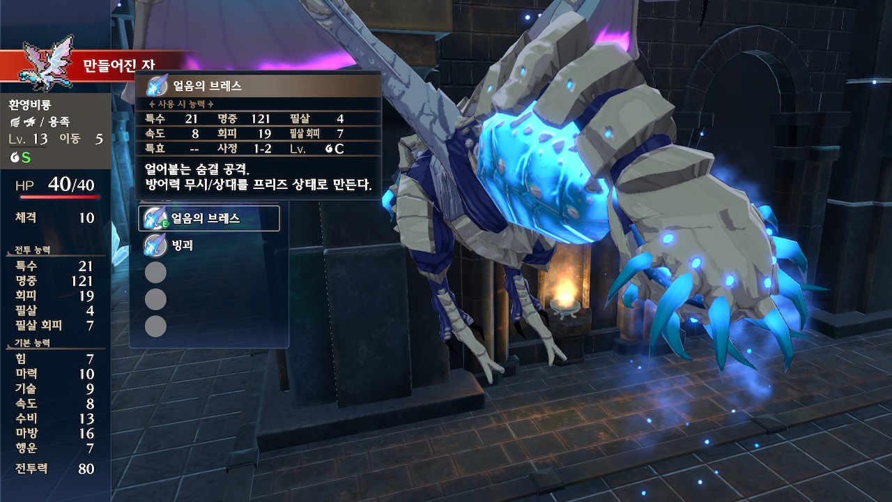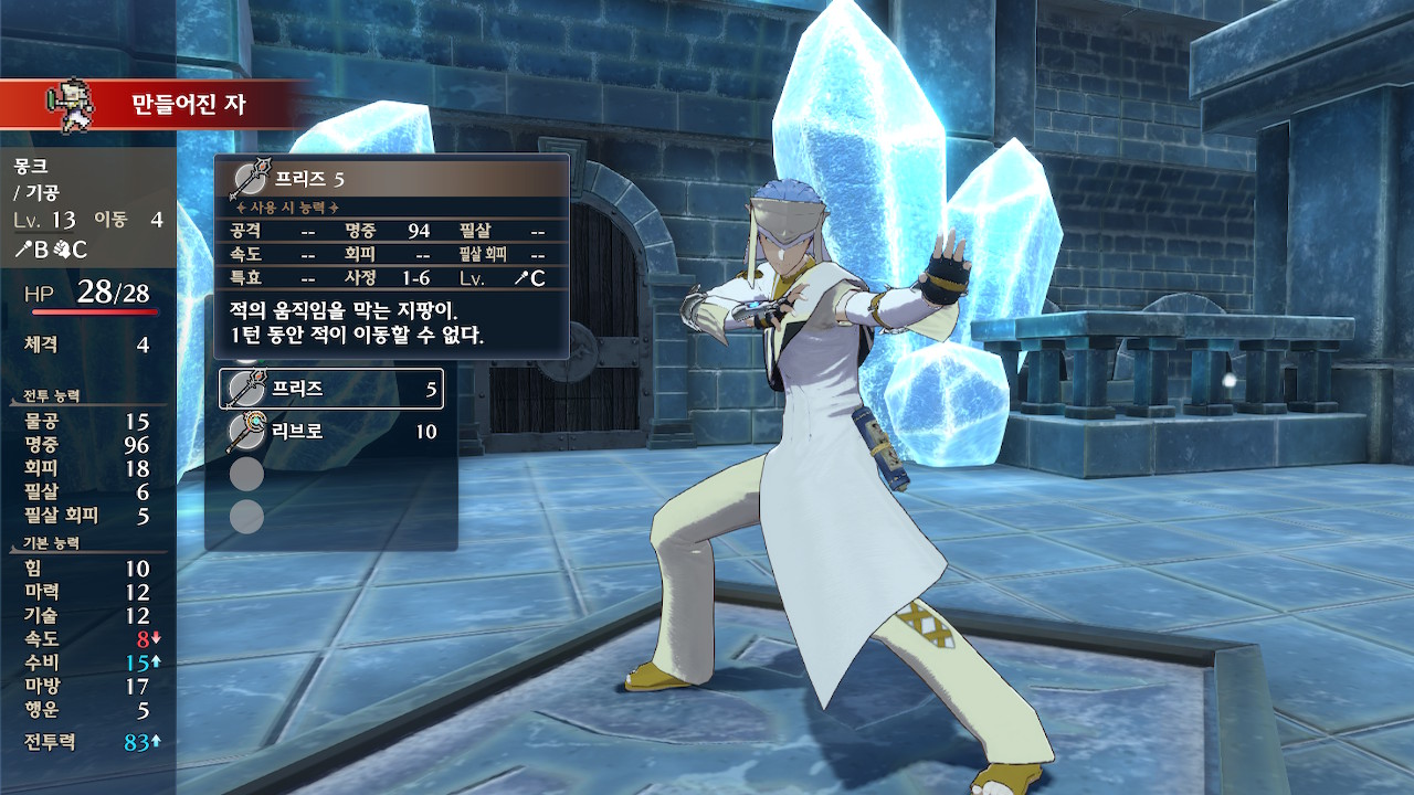 맹진 스킬(프리즈 무효)을 갖고 있는 문장사가 있었던 것 같은데, 가뜩이나 sp가 부족한 게임이라 치키 외전 때문에 맹진을 찍는건 과투자라고 봅니다.
